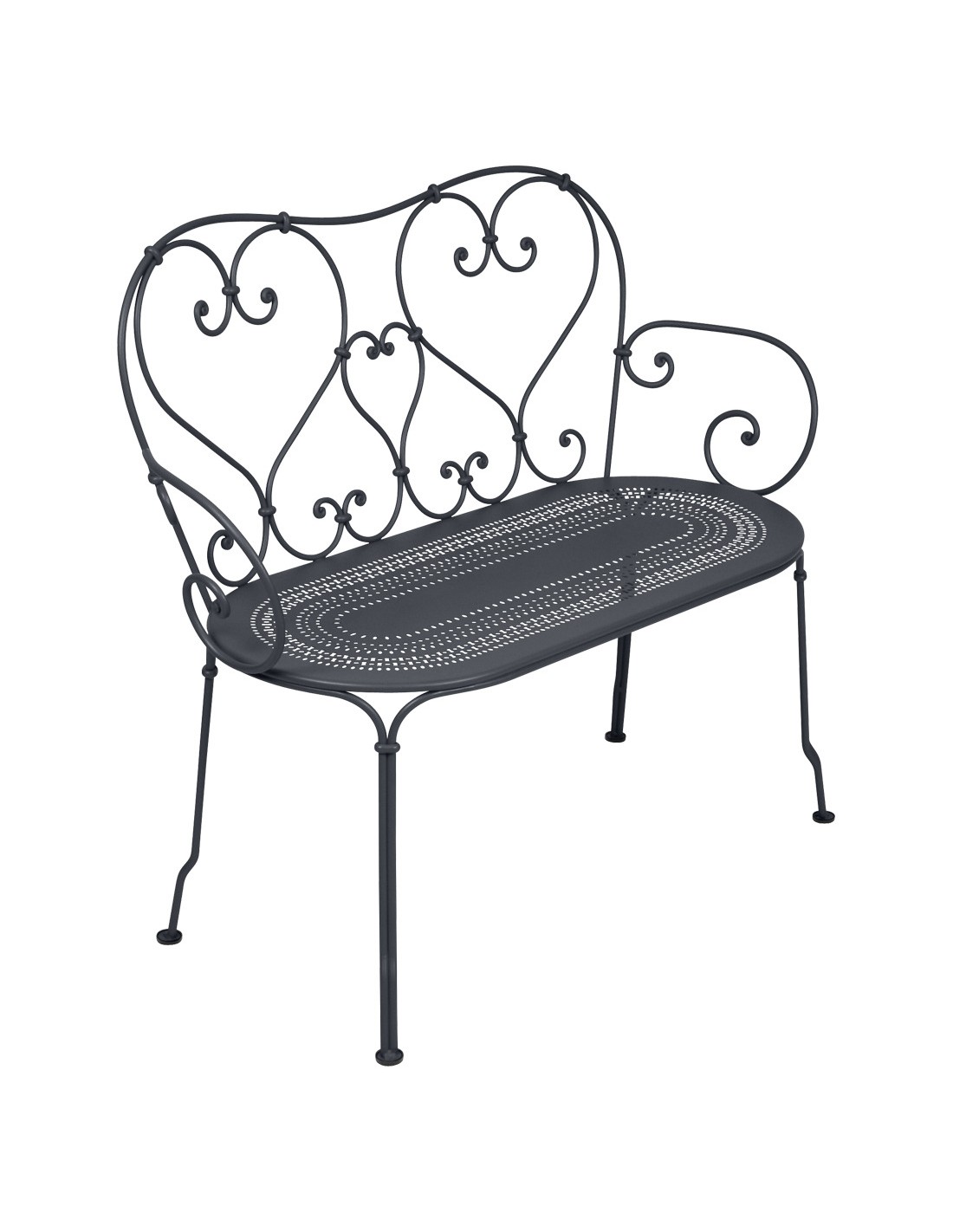 Ručně kované dekorativní křivky a jemně perforovaný sedák podtrhují poctivé řemeslné zpracování založené na dlouholetém know-how. Díky těmto detailům působí lavička lehce, elegantně a zároveň romanticky.