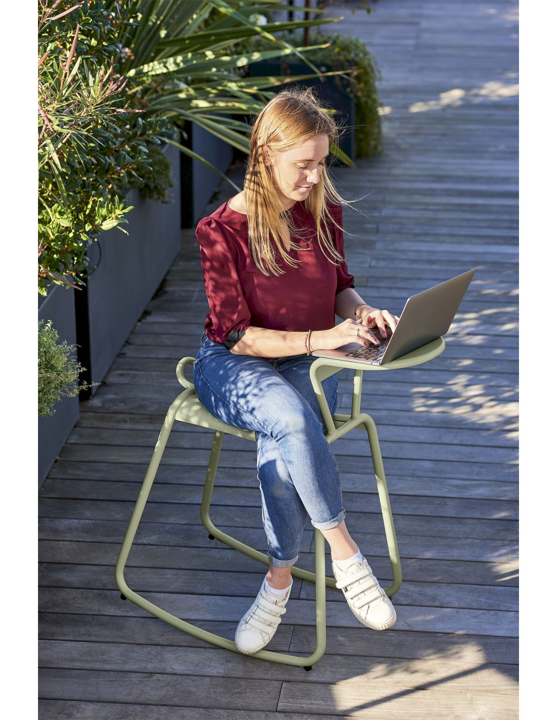 Alternativa pracovního stolu pro práci na terase nebo v zahradě.