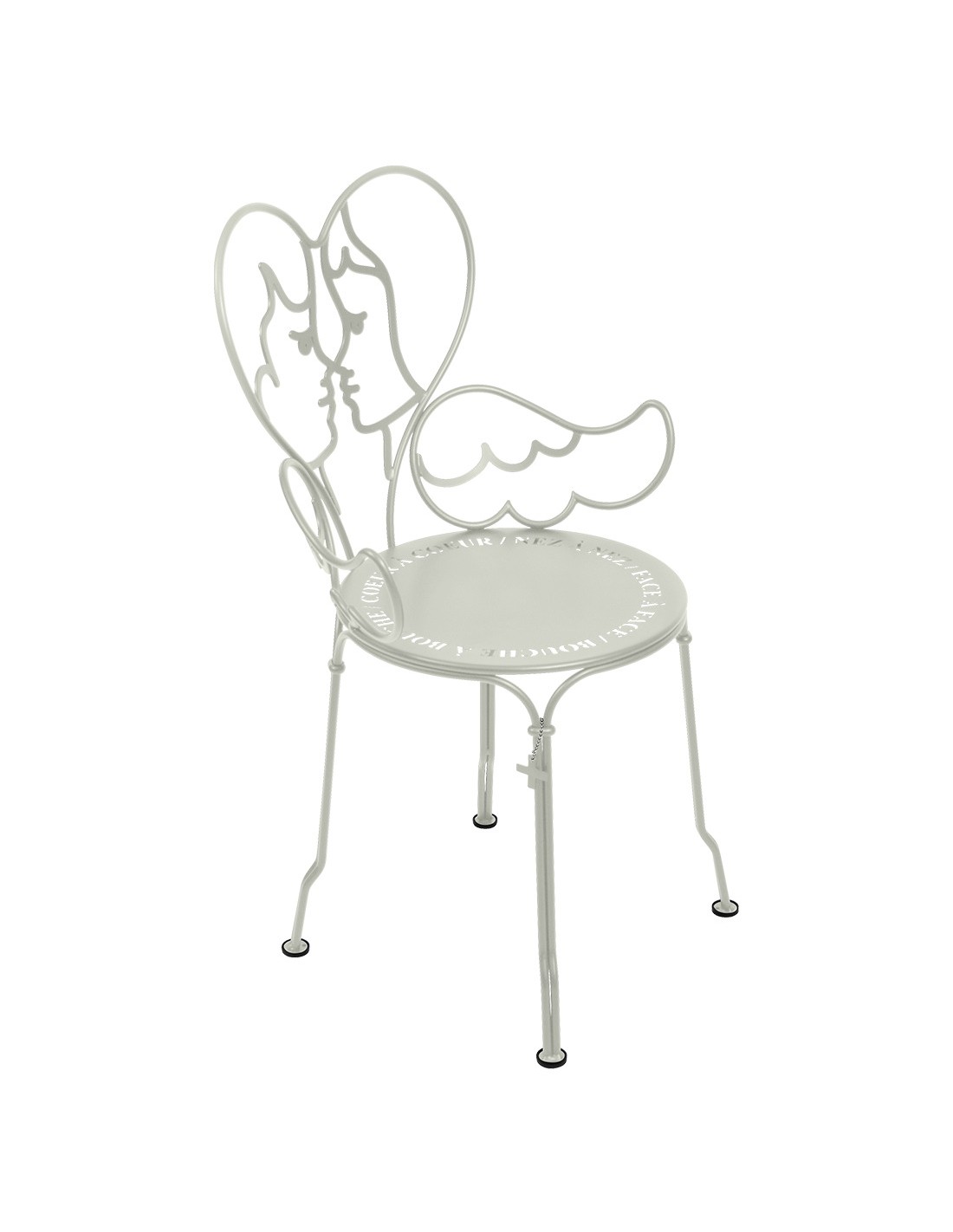 Židle Ange od značky Fermob, navržená designérem Jean-Charles de Castelbajac, je originální pojetí ikonické židle 1900, které spojuje svět módy, umění a řemeslné preciznosti. Tento výjimečný kus nábytku působí jako „poezie v pohybu“ – jeho tvar evokuje rozepjatá křídla a lehkost, která vybízí k odpočinku. Opěradlo je tvořeno dvěma andílky v jemném motivu srdce, které je nejen dekorativní, ale i pohodlné pro opření zad.
