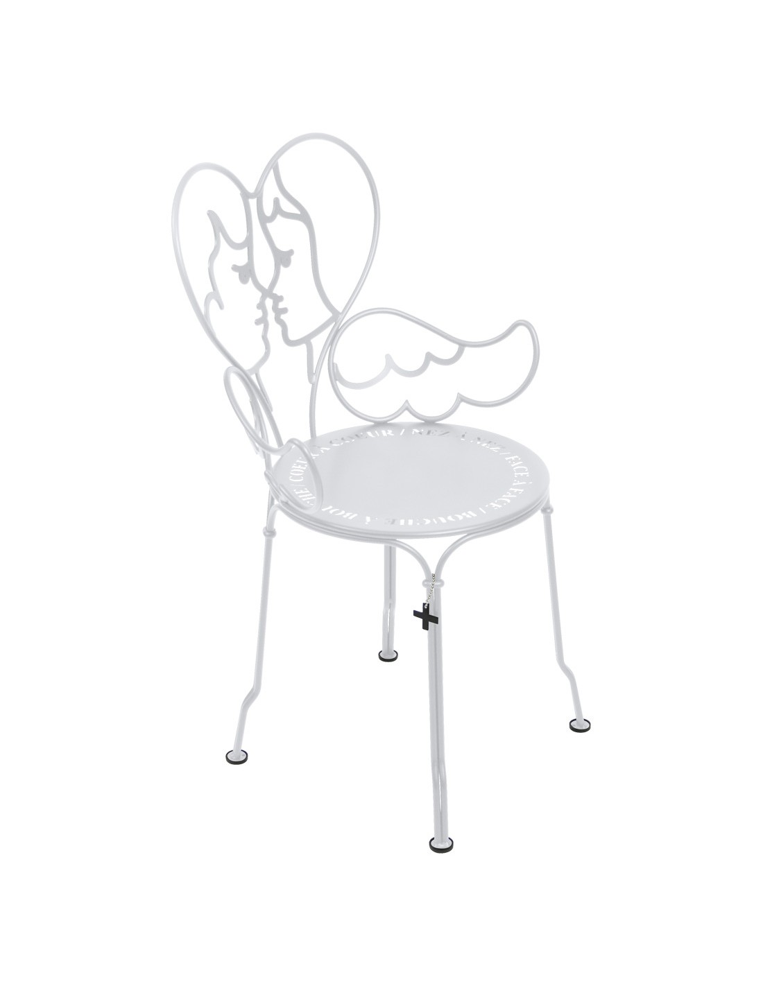 Židle Ange od značky Fermob, navržená designérem Jean-Charles de Castelbajac, je originální pojetí ikonické židle 1900, které spojuje svět módy, umění a řemeslné preciznosti. Tento výjimečný kus nábytku působí jako „poezie v pohybu“ – jeho tvar evokuje rozepjatá křídla a lehkost, která vybízí k odpočinku. Opěradlo je tvořeno dvěma andílky v jemném motivu srdce, které je nejen dekorativní, ale i pohodlné pro opření zad.