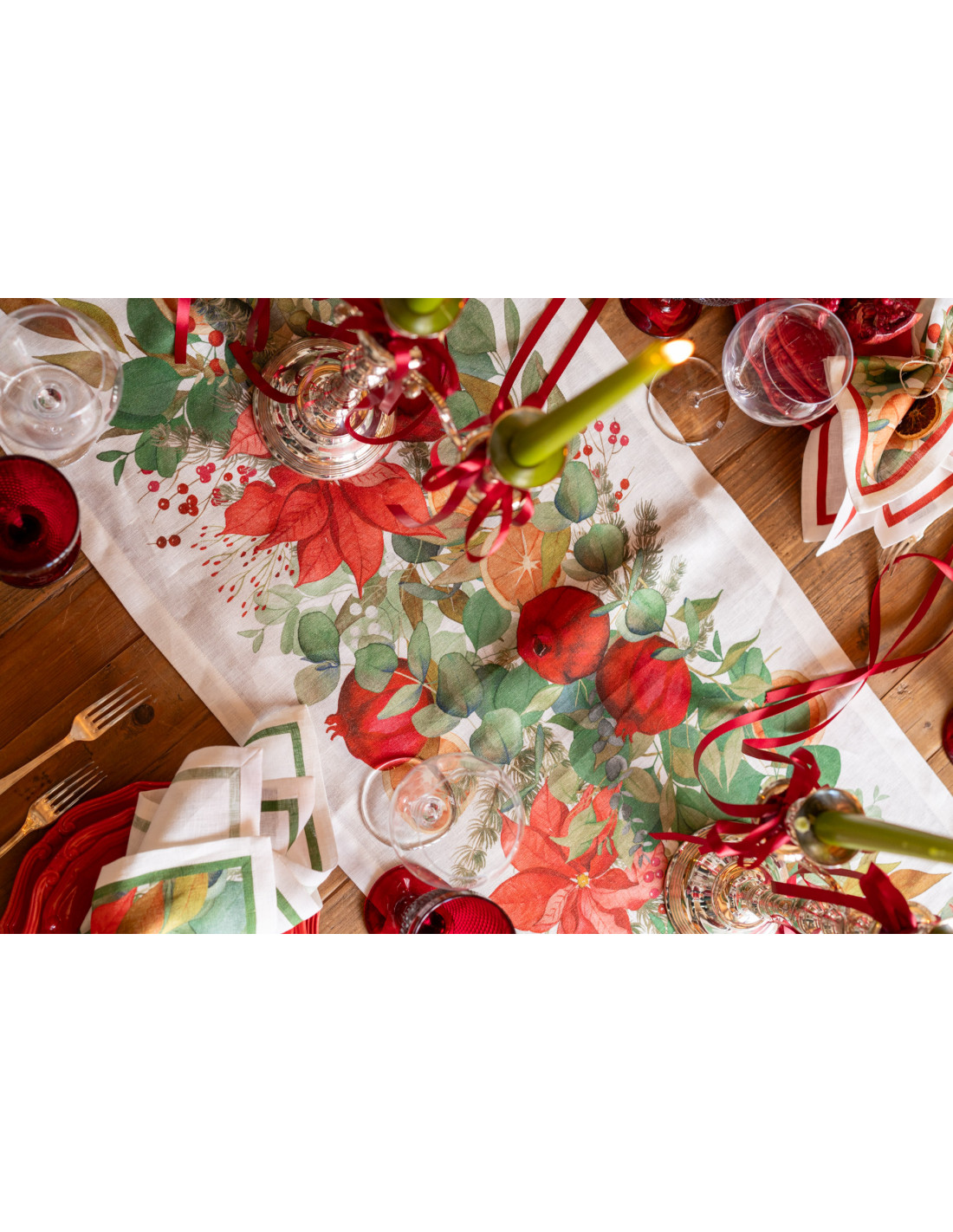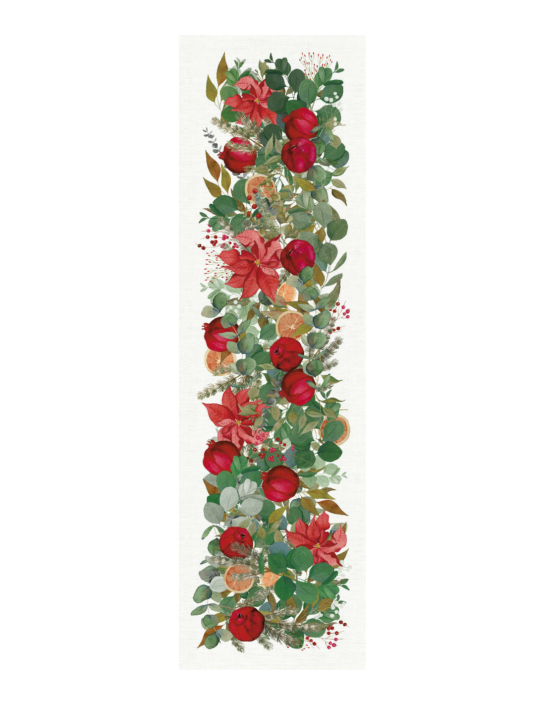 Lněný běhoun s vánočním potiskem Garland Glee 50x170| TESSITURA TOSCANA TELERIE
