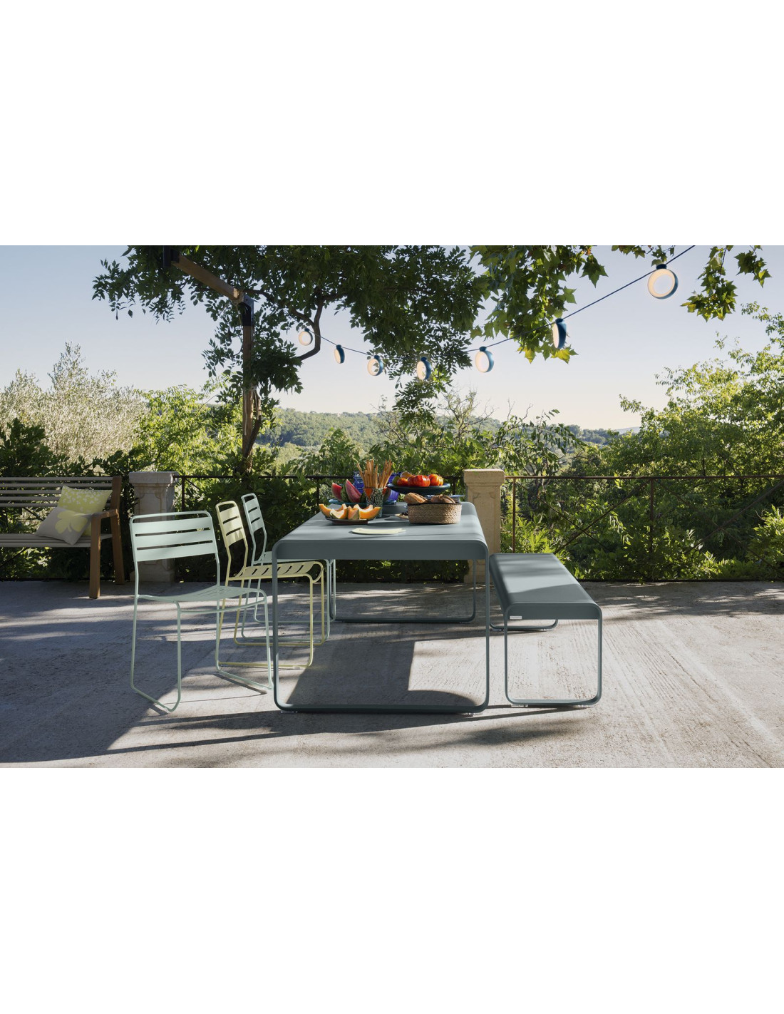 Kovová, praktická zahradní lavice v souladu s designem stolu Bellevie. Lavice je vyrobená z hliníku, je tedy lehká, dá se snadno přemísťovat. Lavici lze umístit samostatně kdekoliv v prostoru, nebo jí lze použít ke stolu, ideálně se na ní vejdou 3 osoby. Vyrábí se v mnoha barevných odstínech.