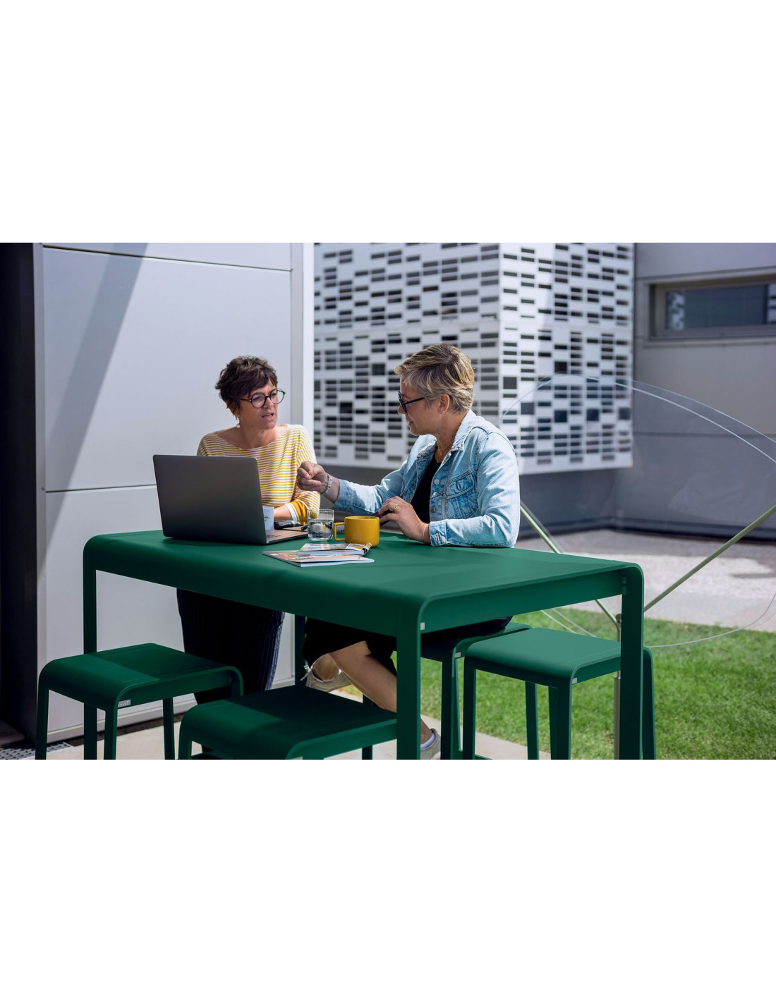 Vysoký stůl Bellevie nabízí mnohostranné využití, od zahradních večírků až po trendy barové prostory uvnitř domu. Díky široké škále barev z Fermob palety si můžete vybrat ten pravý odstín pro váš prostor!