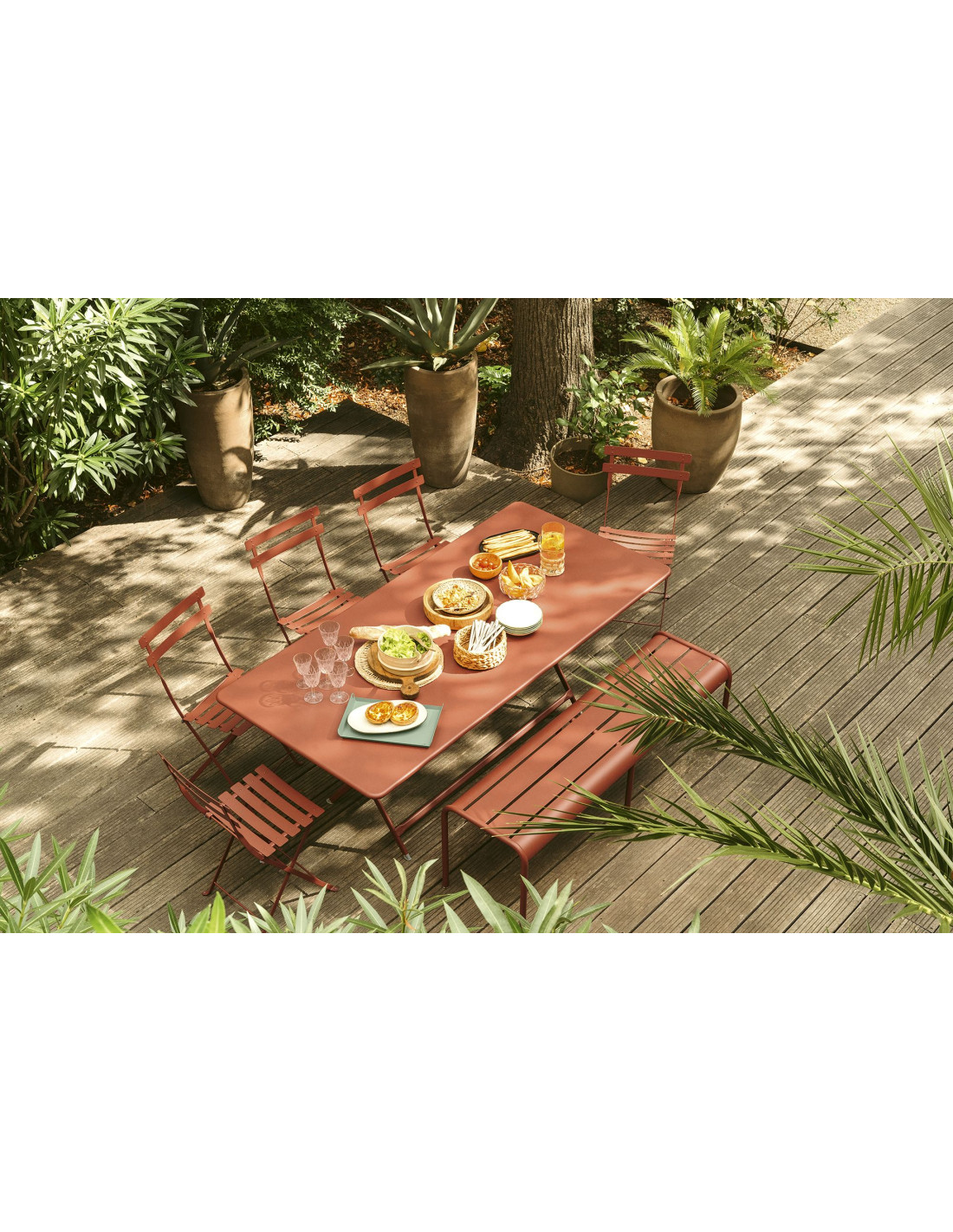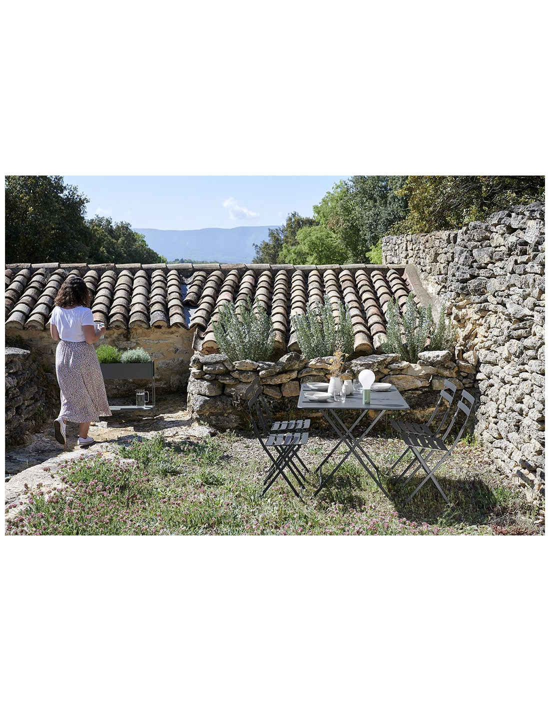 Venkovní skládací nábytek je velmi populární pro jeho rychlé a snadné zabalení. Kovové židle Bistro jsou ideální pro posezení na terase, nebo v zahradě. Židle jsou dostupné ve 22 barvách. Kolekce Bistro je založená na autentičnosti, s ohledem na tradici původního designu patentovaného v roce 1889. Skládací židle a stoly byly oblíbené mezi stánkovými prodejci ve francouzských městech na konci 19. stol.