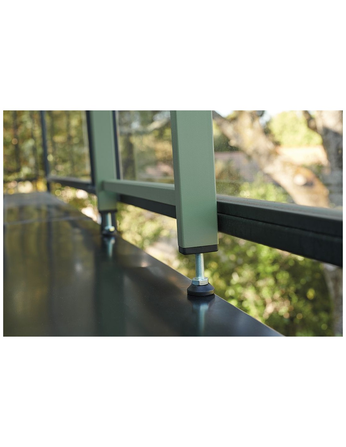Materiál: lakovaná ocel s venkovní povrchovou úpravou a UV ochranou, plastové podložky.