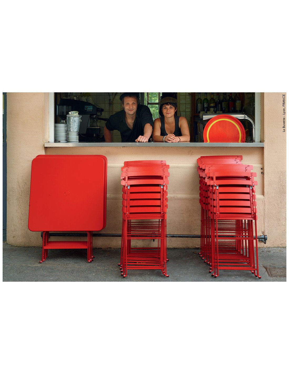 Kolekce Bistro je založená na autentičnosti, s ohledem na tradici původního designu patentovaného v roce 1889. Skládací židle a stoly byly populární mezi stánkovými prodejci ve francouzských městech na konci 19. Stol. Tento typ nábytku zůstává vyhledávaným díky své nadčasovosti a praktičnosti, a je skvělou volbou pro balkony, zahrady a moderní terasy.