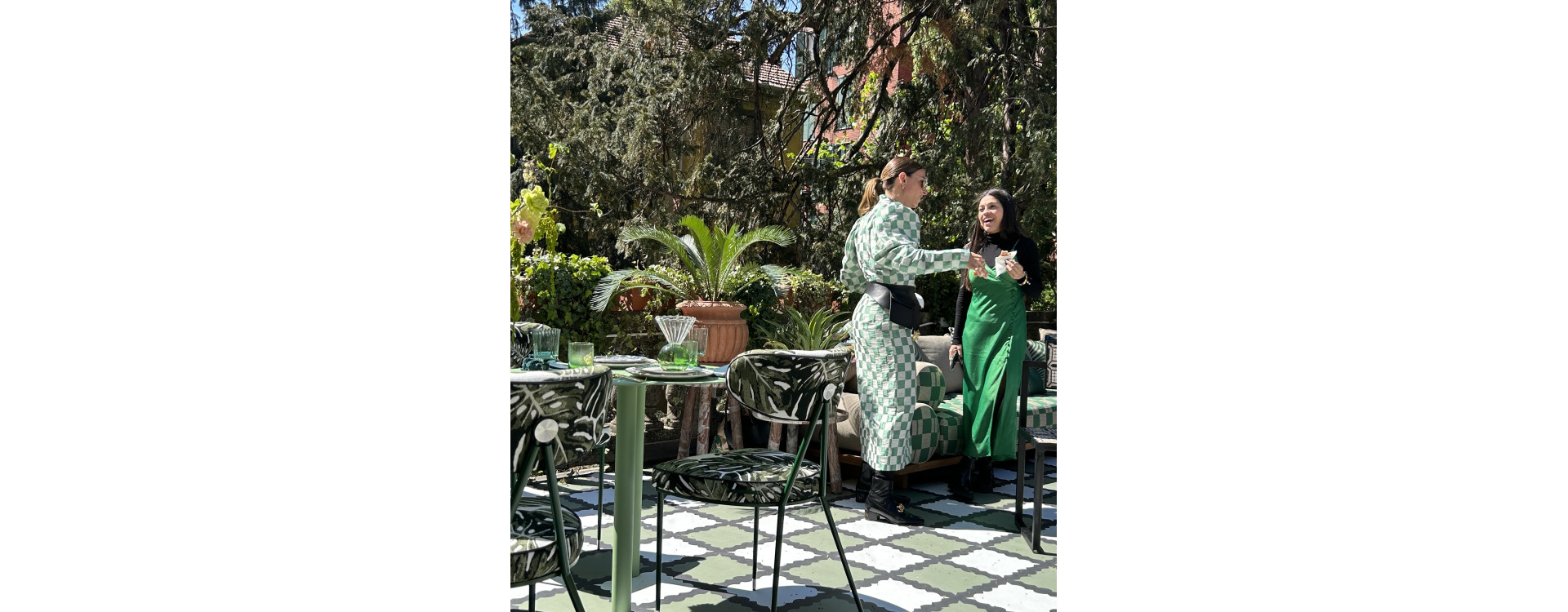 Milán je velkoměsto, které si je vědomo významu zeleně. Všechny balkóny i střešní terasy jsou minizahradami s bujnou vegetací. Zeleň najdete i na nádvořích historických paláců nebo atriích kancelářských budov, které jsou v rámci Salone zpřístupněny veřejnosti. Doslova si užíváme objevování „zelených oáz“ v průchodech různých budov. Naše oblíbená nadace 5vie, podporující život v historickém centru města, dala k dispozici svůj romantický palác architektonickému studiu Artemest, které vytvořilo L´Appartamento, tedy příklad ideálního bydlení. Naprosto fantastická byla terasa v neobvyklé zeleno-černé kombinaci.
