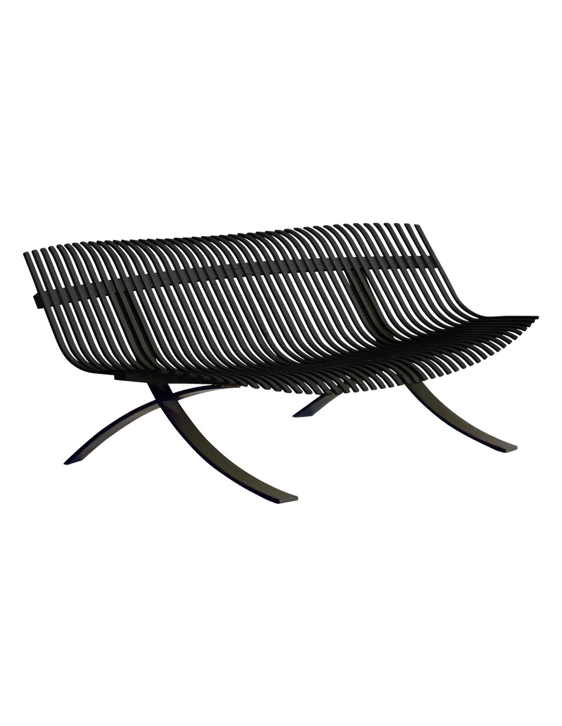 Výjimečná, elegantní lavice, která designově připomíná houpací síť, vybízí k odpočinku. Lavice je velice pohodlná, zakřivené hliníkové lamely tvoří sedák i opěrák a tvarově jsou přizpůsobeny pro příjemné sezení. Ocelové nohy ve tvaru kříže dělají lavici pevnou a schopnou unést váhu až šesti lidí. Lavice se vyrábí v mnoha barevných odstínech, jen základna nohou je vždy v barvě černé, odstín Liquorice.