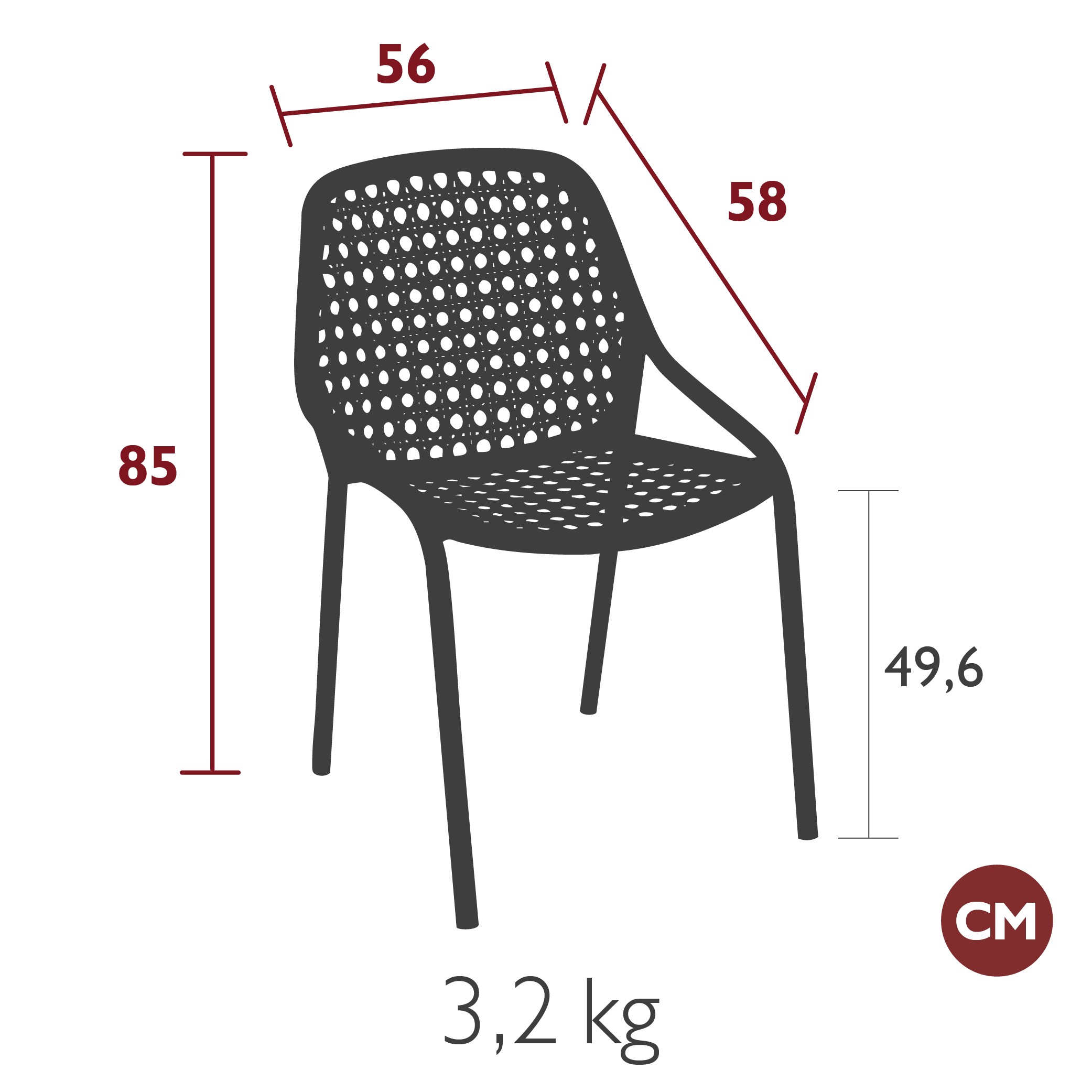 Židle je možné stohovat, až 4kusy - výška 93,2cm