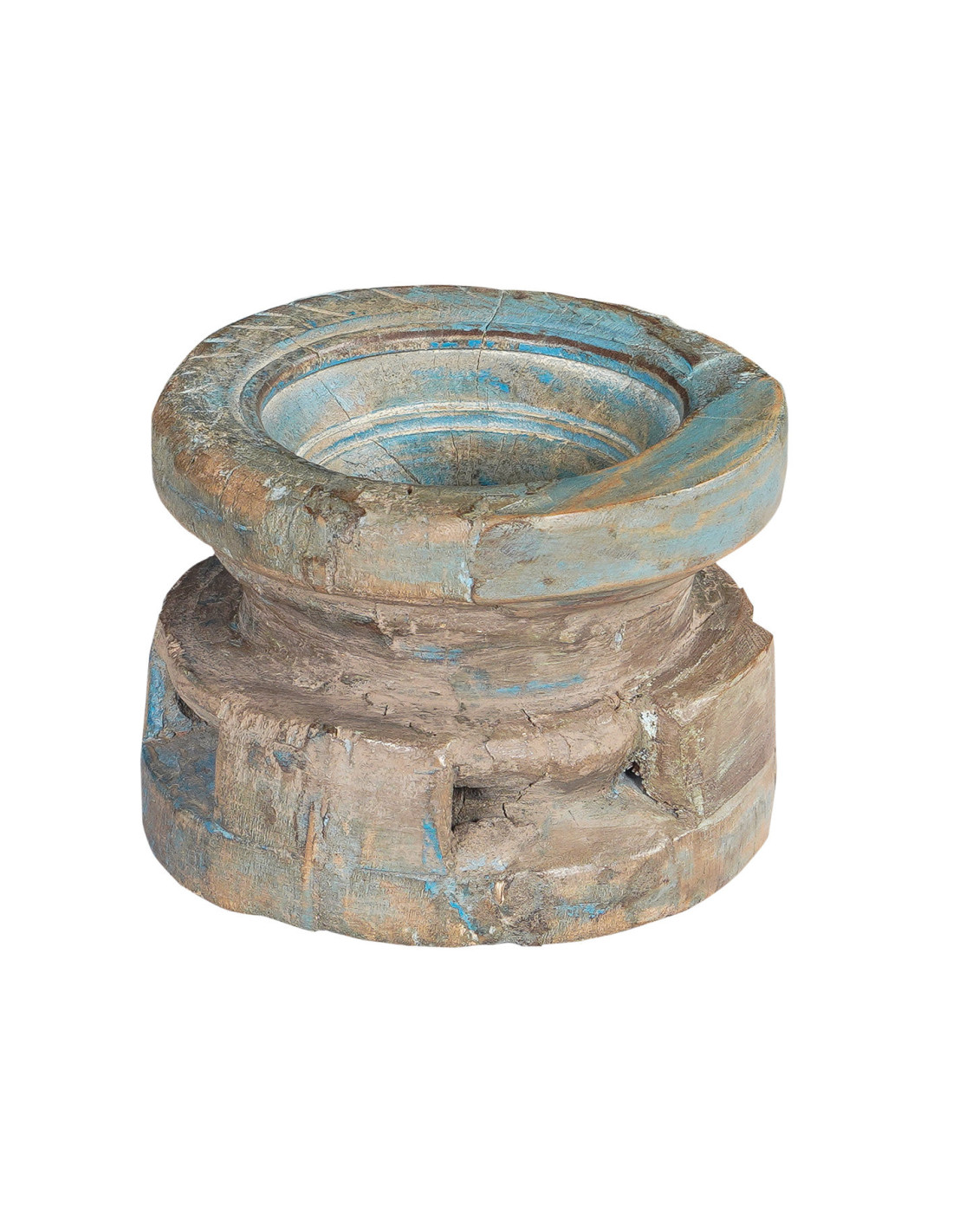 Originální dřevěný podstavec z masivního teakového dřeva s původní patinou a zbytky tyrkysového nátěru mu dodávají autentický vintage vzhled a jedinečný charakter. Je ideální jako dekorativní prvek pro vystavení svíček nebo samostatná dekorace, která vnese do vašeho interiéru přírodní teplo a osobitý styl. Skvěle doplní rustikální, boho nebo industriální prostory.