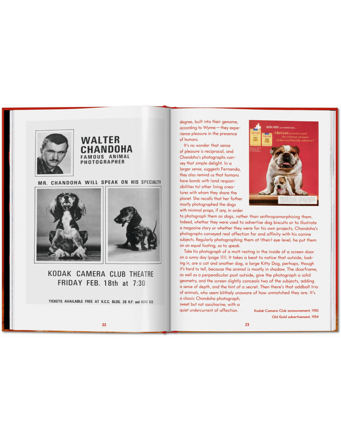Odkaz slavného fotografa zvířat Waltera Chandohy, považovaného za nejvýznamnějšího fotografa domácích mazlíčků 20. století, pokračuje touto knihou věnovanou psům – nejlepším přátelům člověka. Publikace představuje více než 60 psích plemen zachycených v ateliéru, v ulicích i v přírodě, v černobílé i barevné fotografii. Najdete zde elegantní portréty, momentky z venkova i snímky z historických výstav. Chandoha, který se fotografii psů a koček věnoval více než 70 let, vybíral tyto snímky jako pokračování své úspěšné knihy Cats. Výsledkem je působivá pocta psům a mistrovství jednoho z největších fotografů své doby.