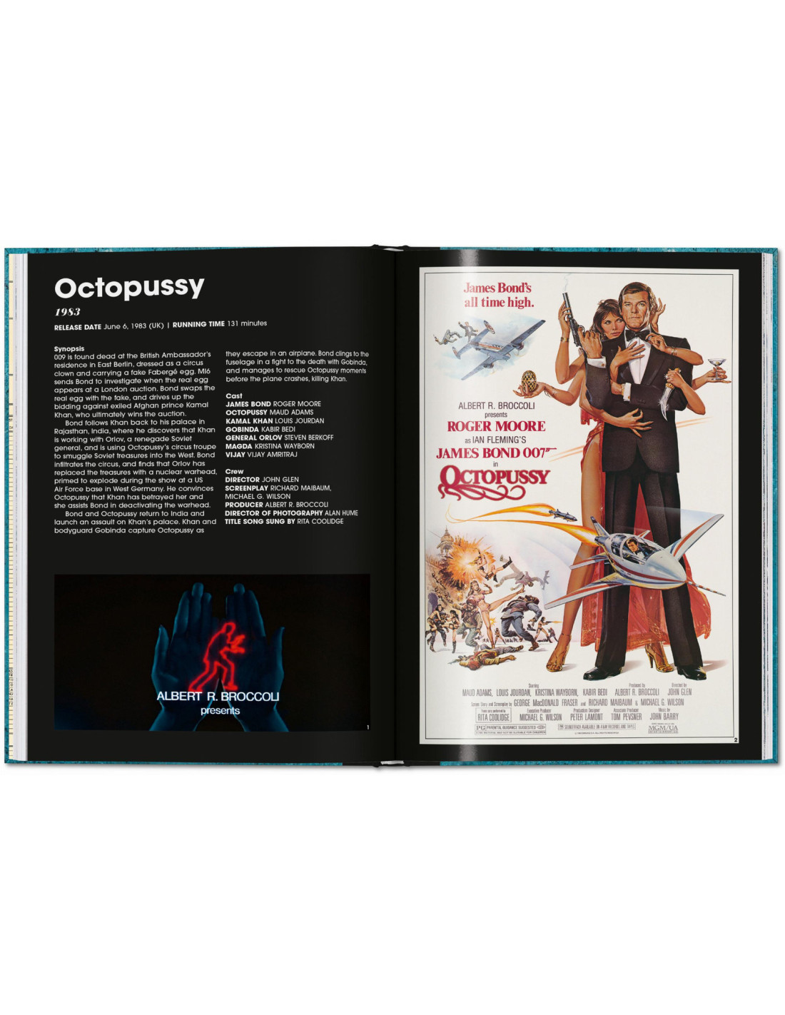 James Bond je už více než 60 let zlatým standardem filmových sérií. Tato bohatě ilustrovaná publikace vás provede světem všech bondovek od Dr. No až po No Time to Die. Editor Paul Duncan získal přístup k oficiálním archivům, díky čemuž kniha obsahuje vzácné a dosud nepublikované fotografie, návrhy scén, storyboardy i produkční dokumenty. Představuje 25 filmů, šest hereckých představitelů agenta 007 a více než sedm dekád filmové historie. Jedinečná obrazová pocta legendě jménem James Bond.