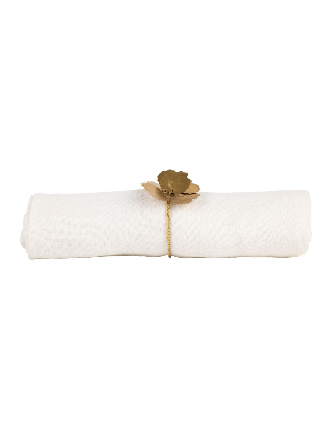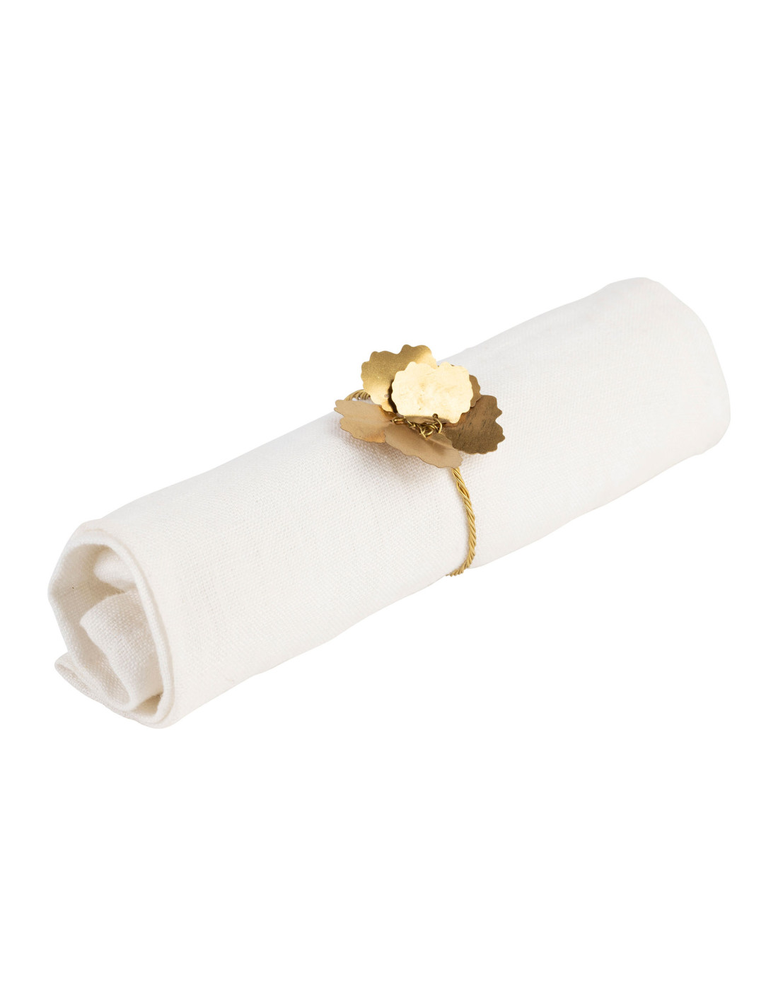 Subtilní kovový kroužek s ozdobnými lístky ve zlaté barvě ozdobí stočený ubrousek a doplní každodenní i slavnostní stolování.
