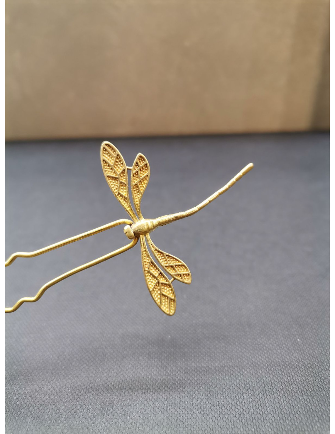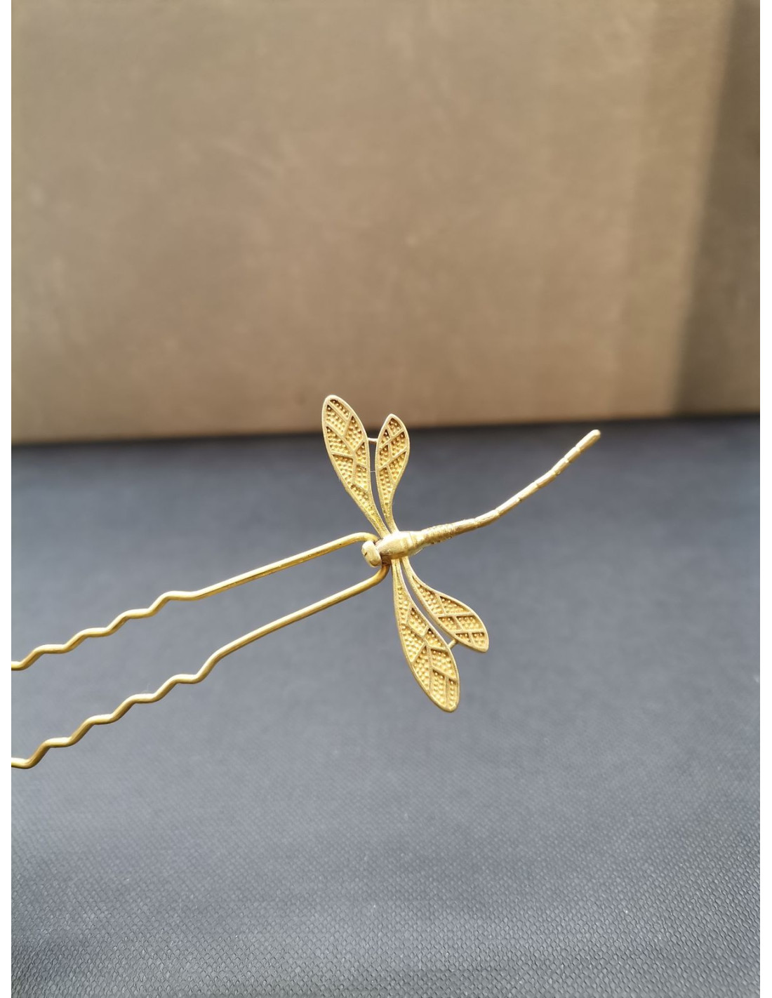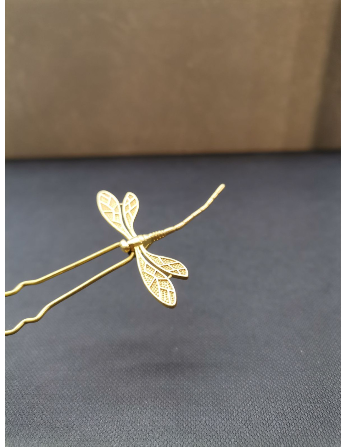 Elegantní jehlice do vlasů s kovovým dekorem vážky je jemným, ale výrazným doplňkem, který vnese do vašeho účesu lehkost a přirozený šarm. Detaily křídel a těla vážky jsou decentně propracované, takže zaujmou na první pohled, ale nepůsobí přehnaně zdobně.