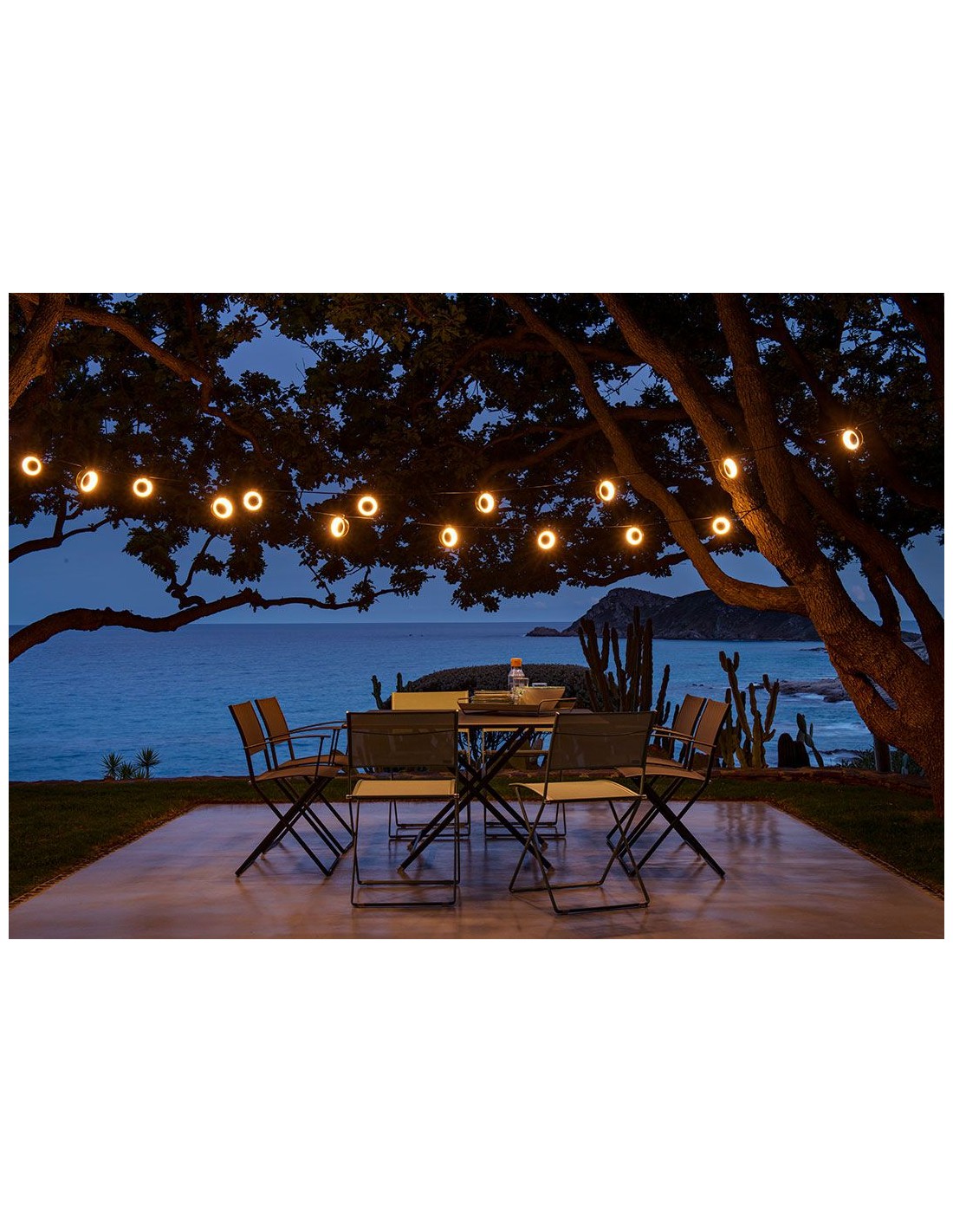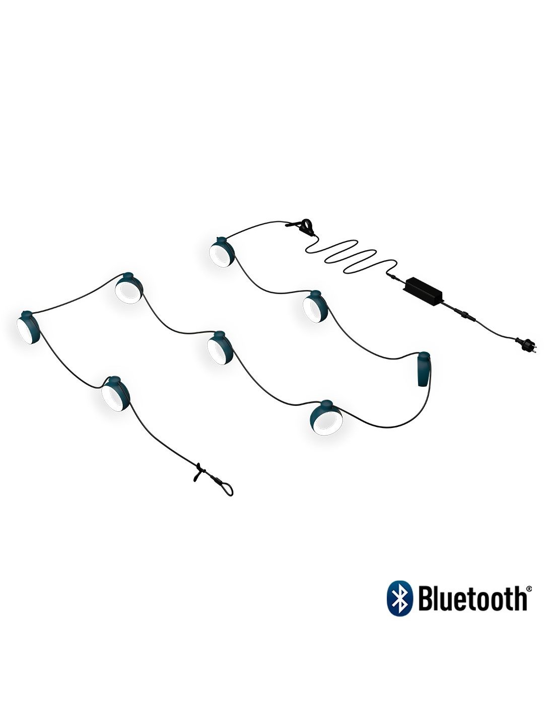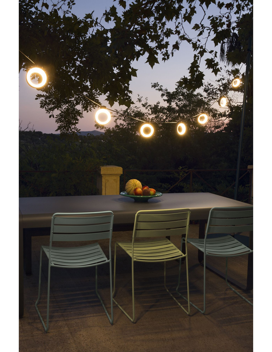 Světelný řetěz Hoop je dokonalým osvětlením vnitřních i venkovních prostor, ve dne i v noci. Designové, výkonné a funkční osvětlení s 8-mi oblými reflektory, můžete zavěsit i ve velkých prostorách, třeba zahrady, které rozzáří jasem až 900lm (každý reflektor poskytuje světlo 120lm a je možné ho nastavit v rozsahu 360°). Ideální pro každou příležitost!Osvětlení Hoop není je krásné, je taky chytré. Je vybaveno technologií Bluetooth a lze jej ovládat na dálku pomocí (bezplatné) aplikace Fermob Lighting, která přichází s řadou funkcí, které vám umožní snadno si přizpůsobit světelnou náladu. Pokud by jste nechtěli využít Bluetooth, můžete použít stmívač, který je součástí a upravit jas podle potřeby (od 10% do 100%).