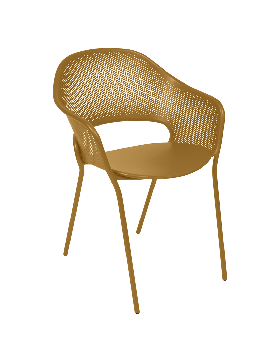 Materiál: lakovaná ocel s venkovní povrchovou úpravou a UV ochranou, plastové podložky. K židli výrobce nabízí kulatý sedák z řady Basic, průměr 43x42 cm.Vyrobeno ve Francii.