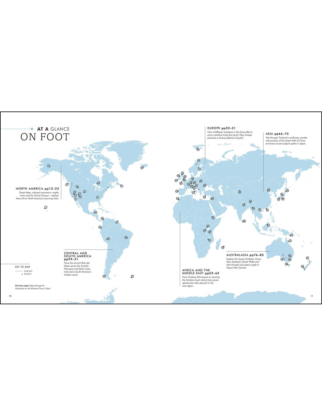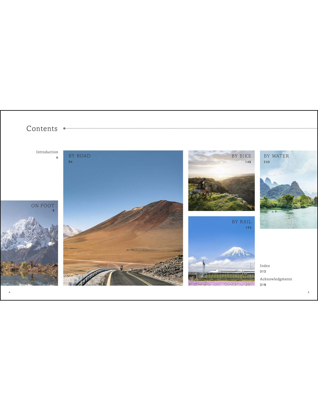 Každá kapitola má stejné geografické pořadí s mapami kapitol zobrazujícími každou pokrytou zemi. Každá sekce pokrývá jiný způsob cestování po světě a je rozdělena podle kontinentů.