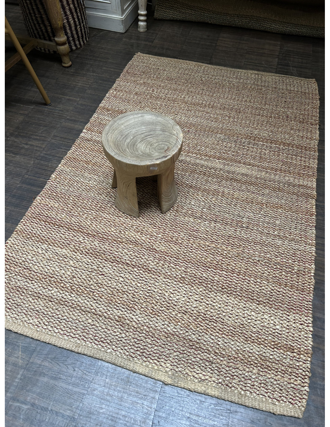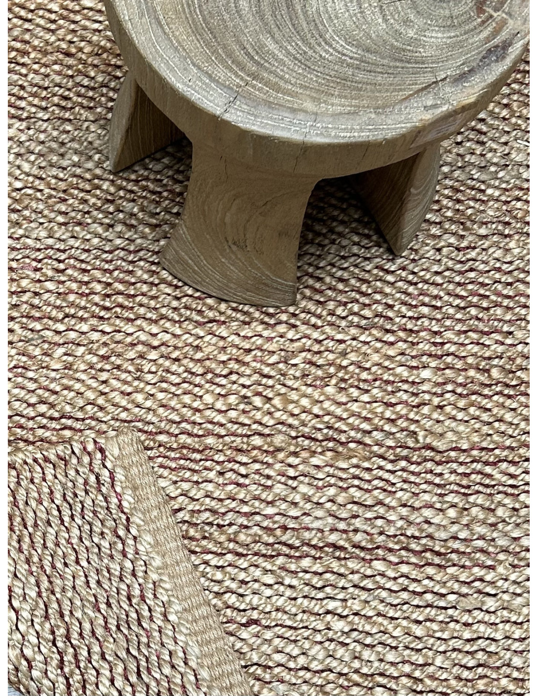 Přírodní koberec z konopných vláken, béžový s červenou | dovoz Indie