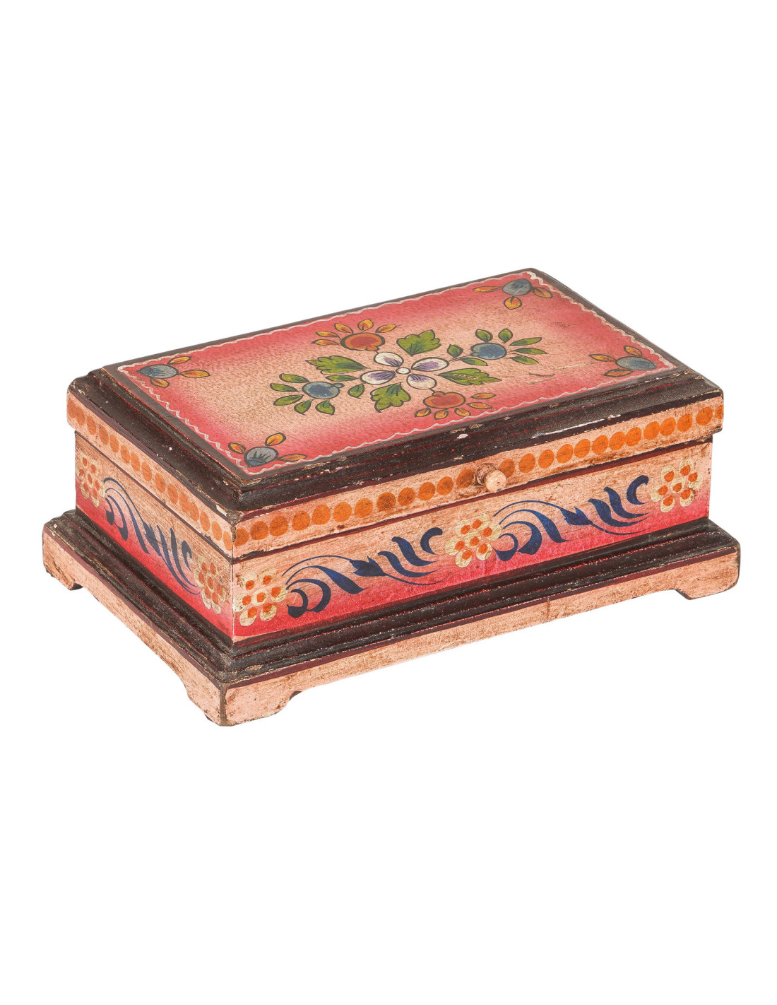 Malovaná dřevěná šperkovnice, která se stane nejen praktickým úložným prostorem, ale také krásným dekoračním prvkem. Krabička je vyrobena ze dřeva s ručně malovaným vzorem. Díky svému designu se hodí do každého interiéru – na komodu, noční stolek nebo toaletní stolek. Ideální pro uložení prstenů, náušnic, náramků či drobných suvenýrů.