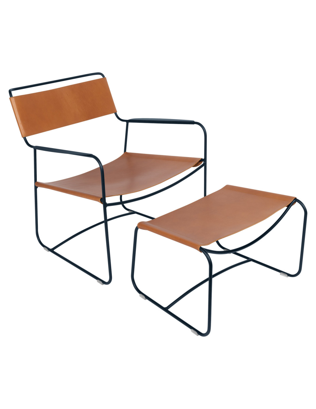 Kovové nízké křeslo Surprising s kůží INDOOR | FERMOB deep blue a