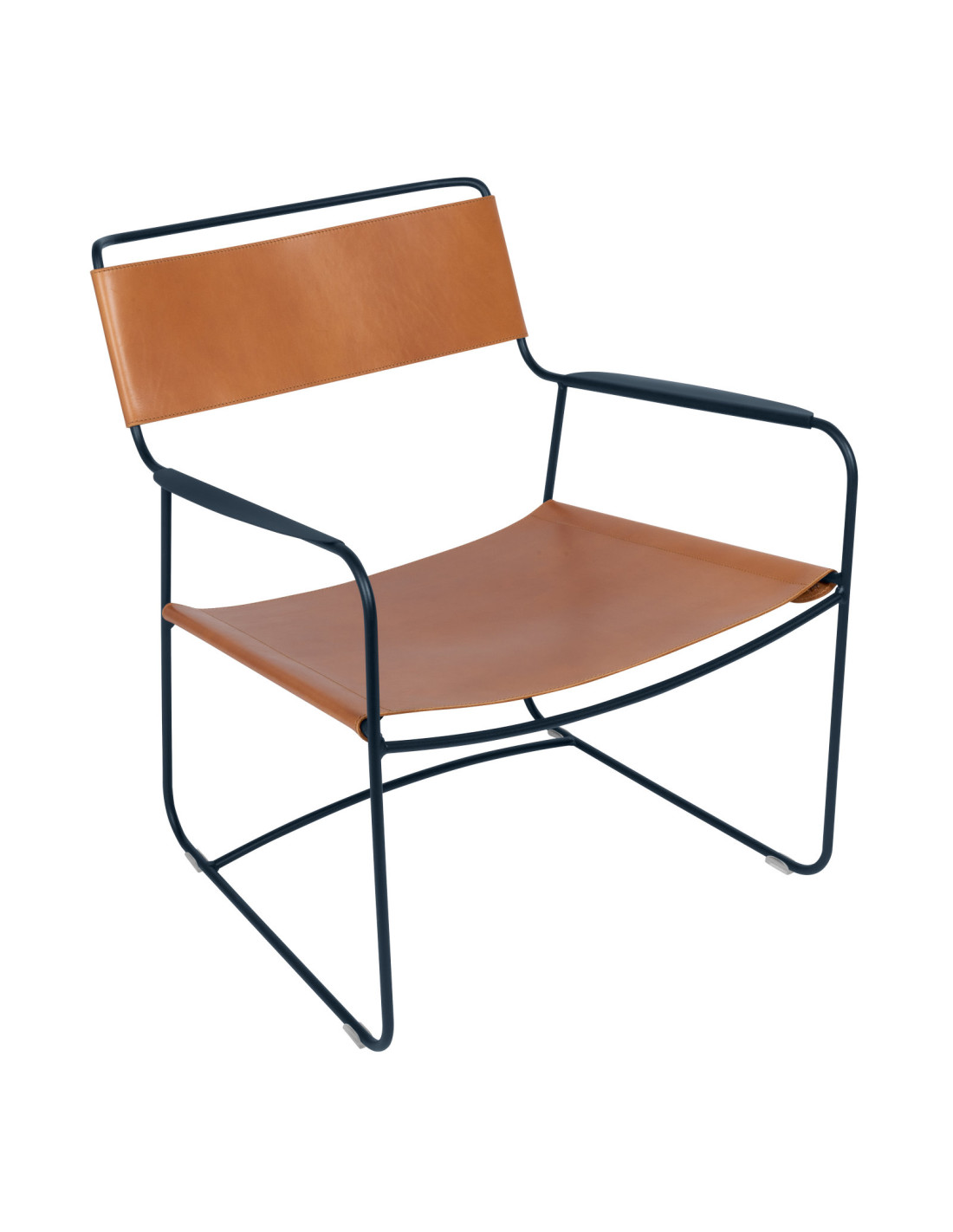 Kovové nízké křeslo Surprising s kůží INDOOR | FERMOB deep blue