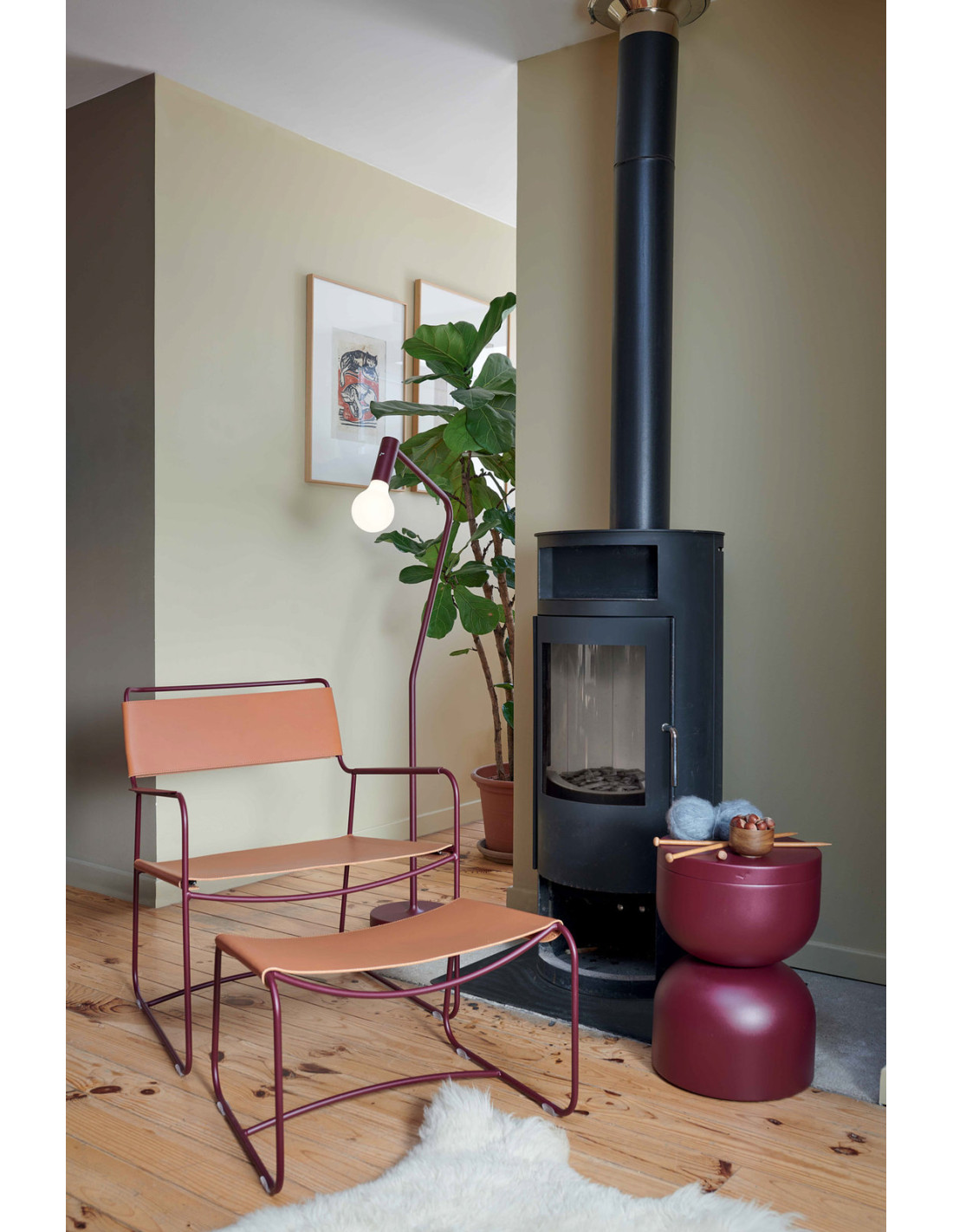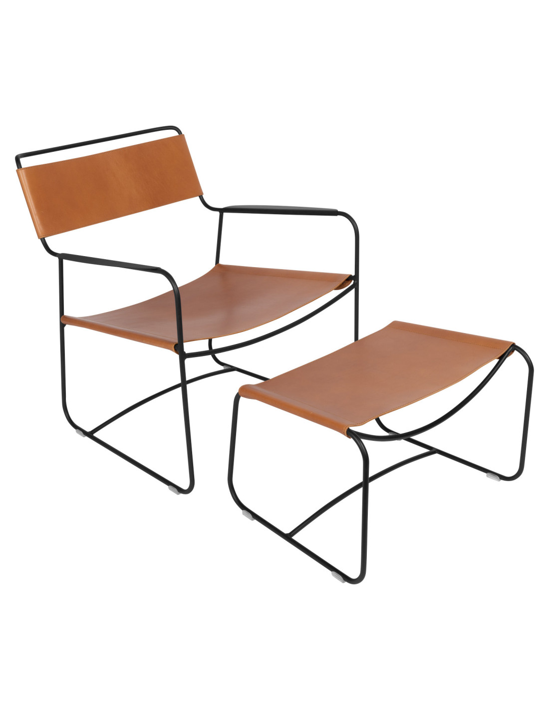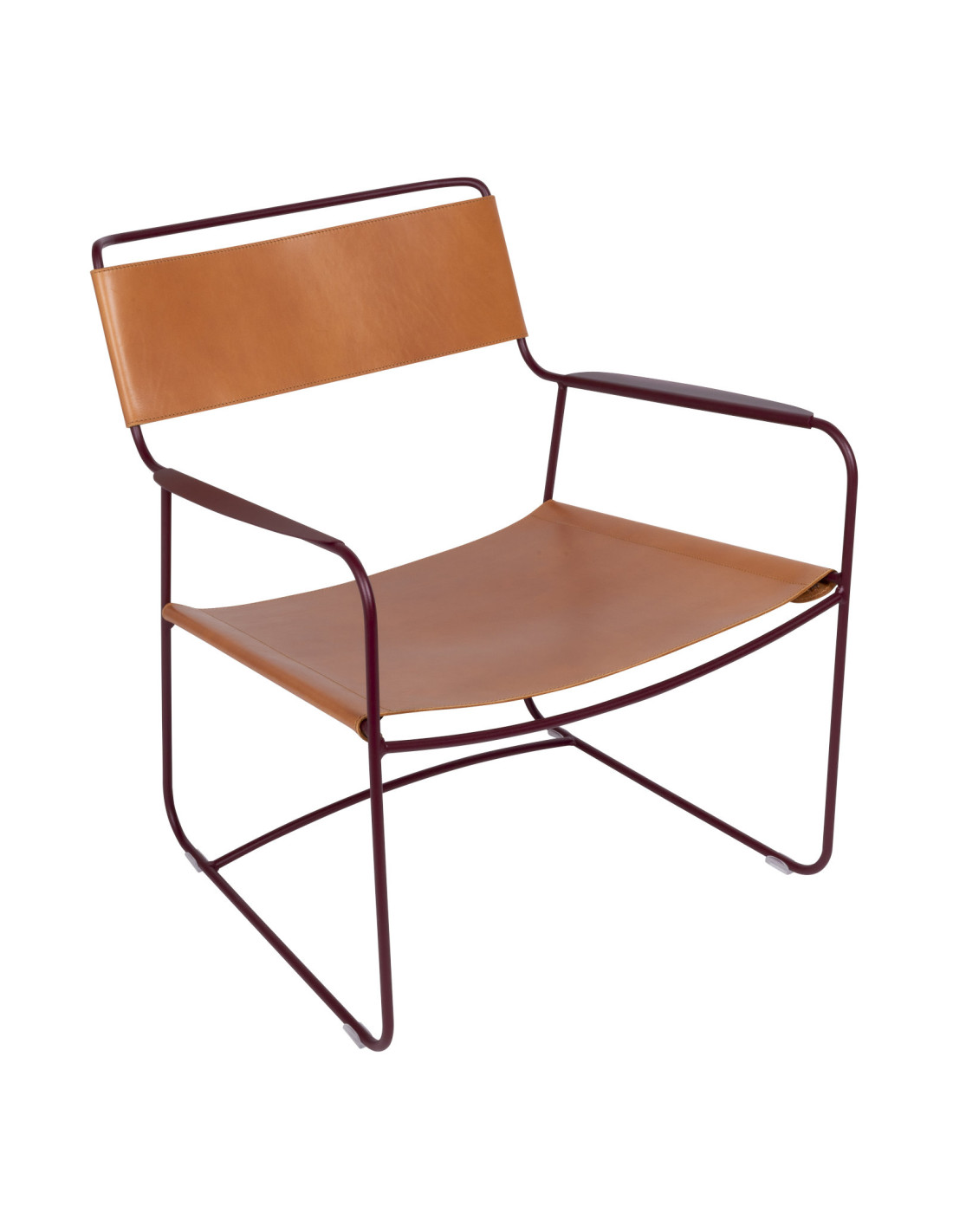 Kovové nízké křeslo Surprising s kůží INDOOR | FERMOB e