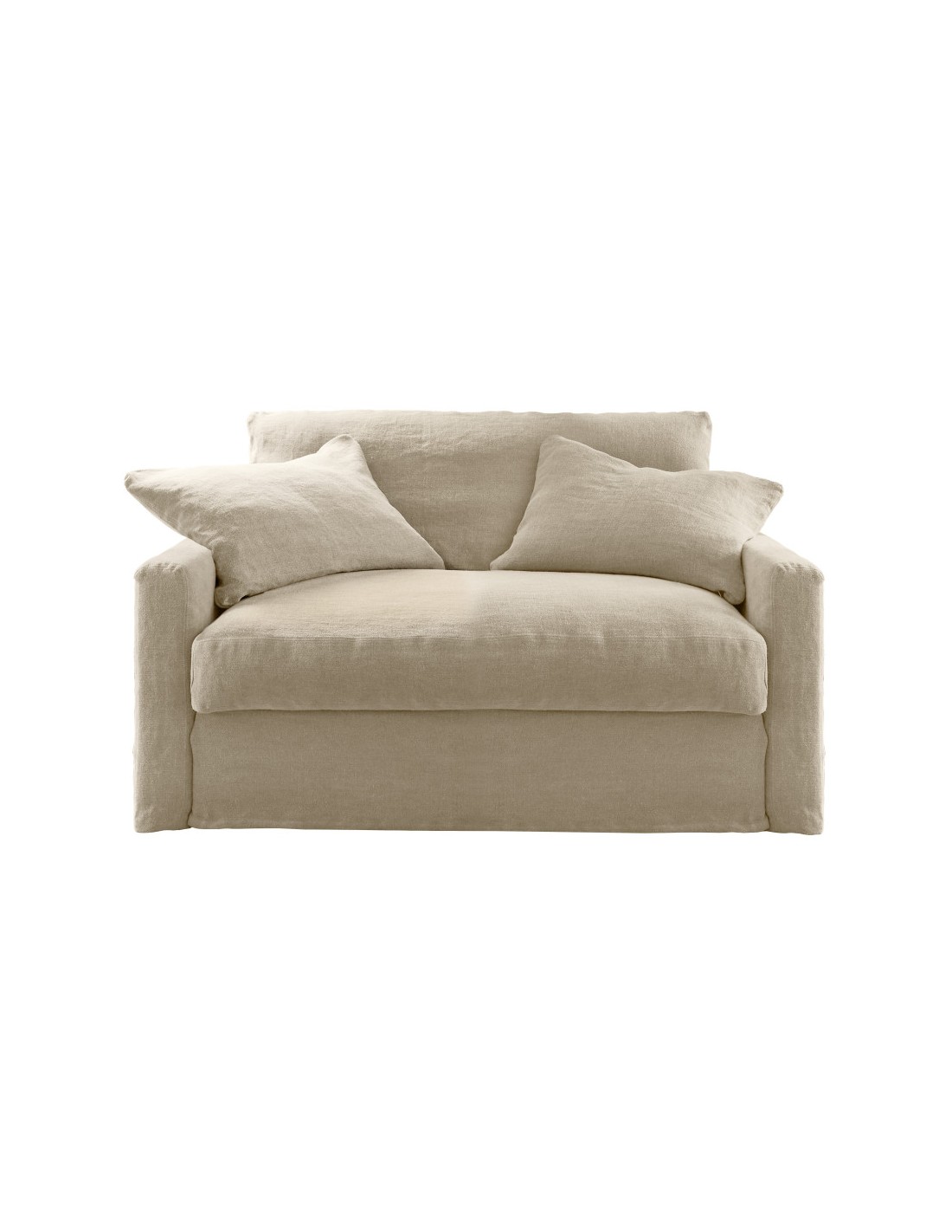 Moderní a velmi pohodlné rozkládací křeslo XL, které se také někdy nazývá "love seats". Široké křeslo, nebo menší sedačka má ležérní snímatelný potah ze 100% lnu.