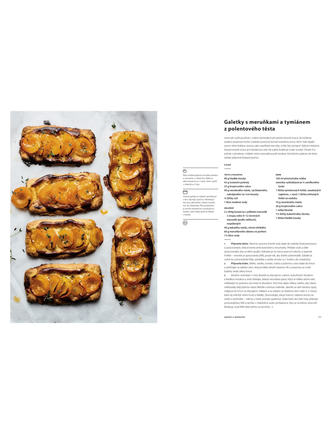 Je docela těžké vybrat si mezi bábovičkami s lískovými oříšky a čokoládovou polevou nebo minidortíky s jahodami a vanilkou, mezi ovocným koláčem s grappou nebo efektním čokoládovo-banánovým cheesecakem, mezi košíčky Mont Blanc či lesními sněhovými pusinkami... Kuchařka vyjadřuje radost z takových okamžiků, kdy něco upečete, kdy se vám povede mistrovský kousek (podrobné postupy a rady v knize vám to skutečně hodně usnadní), kdy si s přáteli nebo s rodinou na moučníku pochutnáte, kdy prostě oslavujete sladké stránky života.