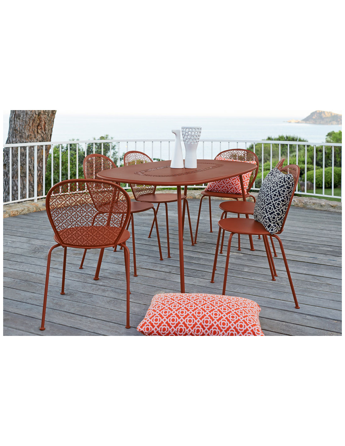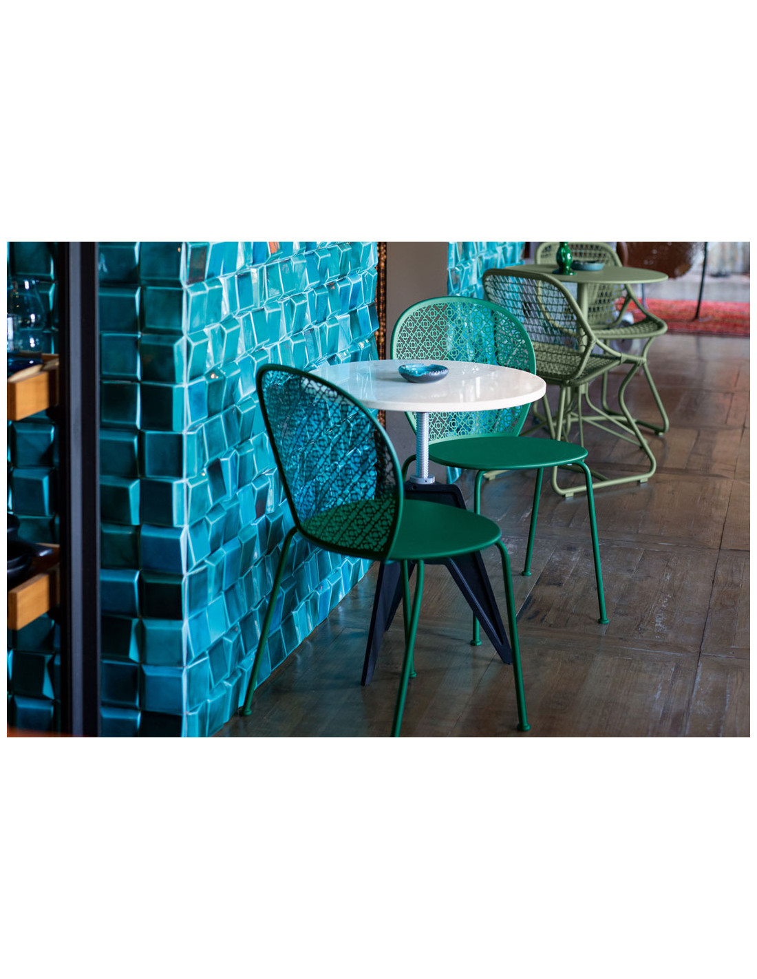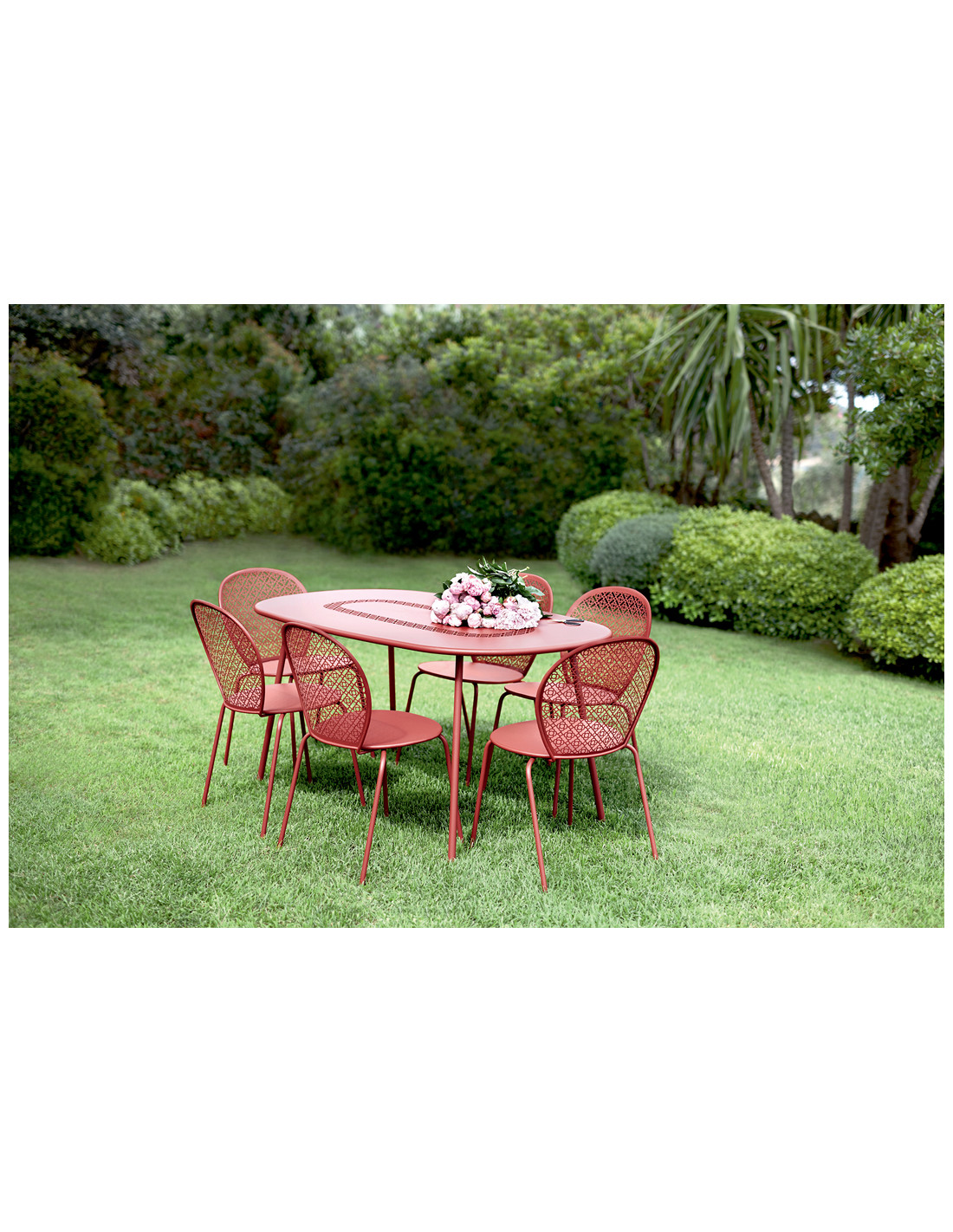 Stylová, elegantní, moderní verze židle z dob Ludvíka XVI, určená nejen pro venkovní použití. Výrazným detailem je perforace opěráku u židle, která je pro tuto kolekci typická. Židle, která se vyrábí v mnoha barevných odstínech, dodá kouzlo a pohodlí každé sestavě zahradního nábytku a zvláště dobře doplní stoly ze stejné kolekce. Předností židle je možnost její stohovatelnosti až do 4 kusů.
