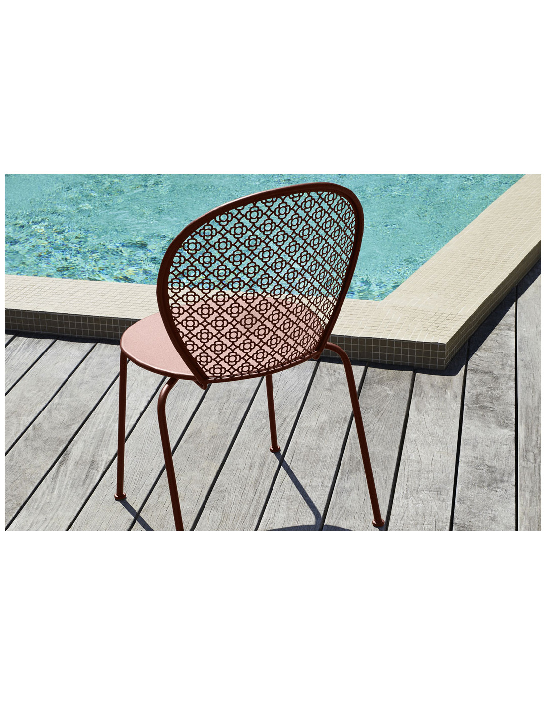 Stylová, elegantní, moderní verze židle z dob Ludvíka XVI, určená nejen pro venkovní použití. Výrazným detailem je perforace opěráku u židle, která je pro tuto kolekci typická. Židle, která se vyrábí v mnoha barevných odstínech, dodá kouzlo a pohodlí každé sestavě zahradního nábytku a zvláště dobře doplní stoly ze stejné kolekce. Předností židle je možnost její stohovatelnosti až do 4 kusů.