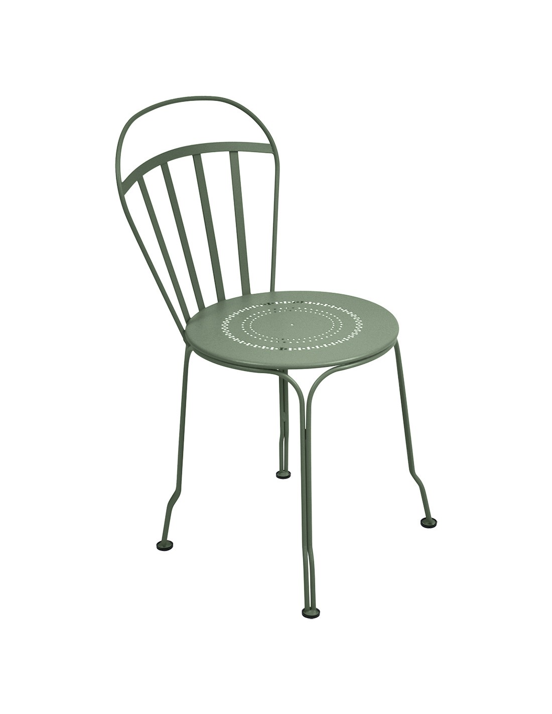 Kovová židle, typově klasická, elegantní, s jemnou perforací na sedáku. Model je inspirovaný židlemi nalezenými v pařížských veřejných zahradách a parcích na začátku 20. století, včetně zahrady Tuileries, přímo u Louvru. Model židle, jeden z nejstarších typů výrobce, je neuvěřitelně funkční, kdy lze naskládat až 10 kusů židlí na sebe. Židle je k dispozici v mnoha barevných odstínech.