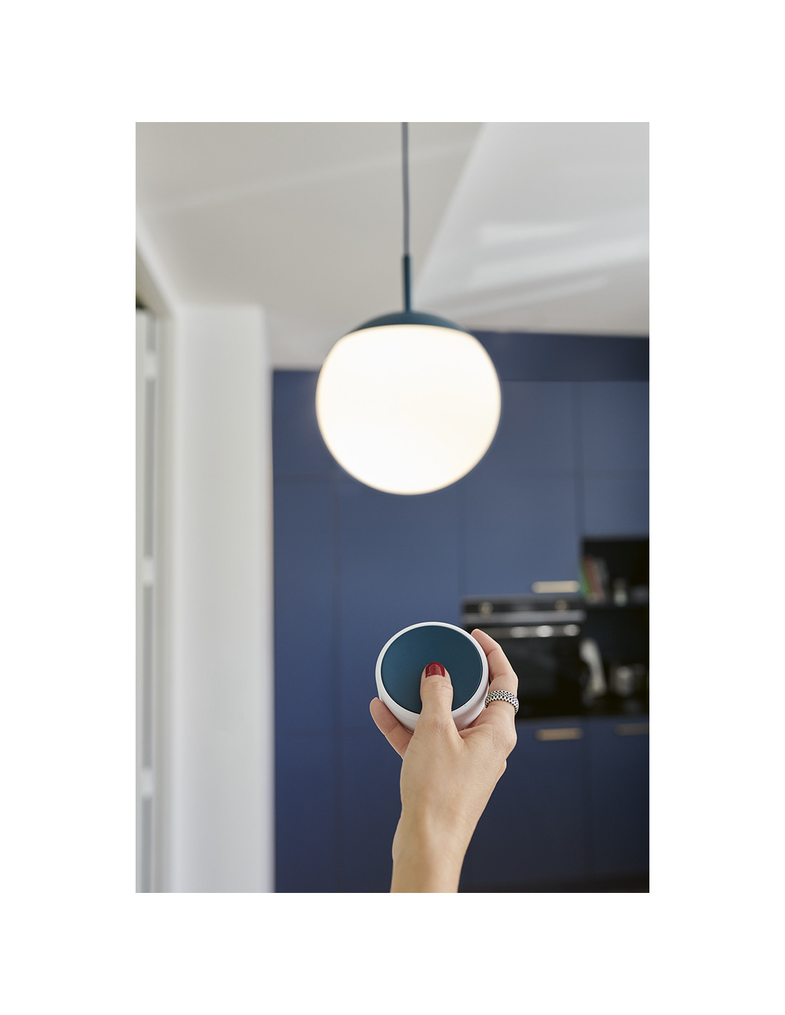 Je velmi intuitivní, zabere jen několik sekund, než se s ním seznámíte. Dlouhými nebo krátkými kliknutími, vyberete požadovaný scénář osvětlení podle vašich aktuálních potřeb. Jednoduchý design skrývá chytrý bezdrátový přepínač, který můžete odložit na podložku, můžete ho mít připevněný ve stojánku ke stěně nebo magnetem na kovový podklad a vždy je připojen ke svítidlům Fermob Bluetooth ve vaší domácnosti.