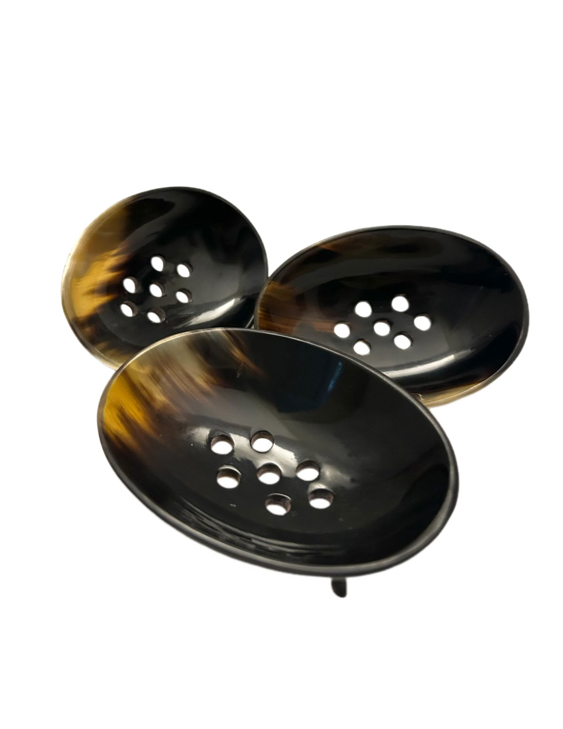 Krásně zpracovaná mýdlenka z žíhané rohoviny a s praktickými otvory pro odtok vody. Hezký prvek pro stylovou koupelnu.
