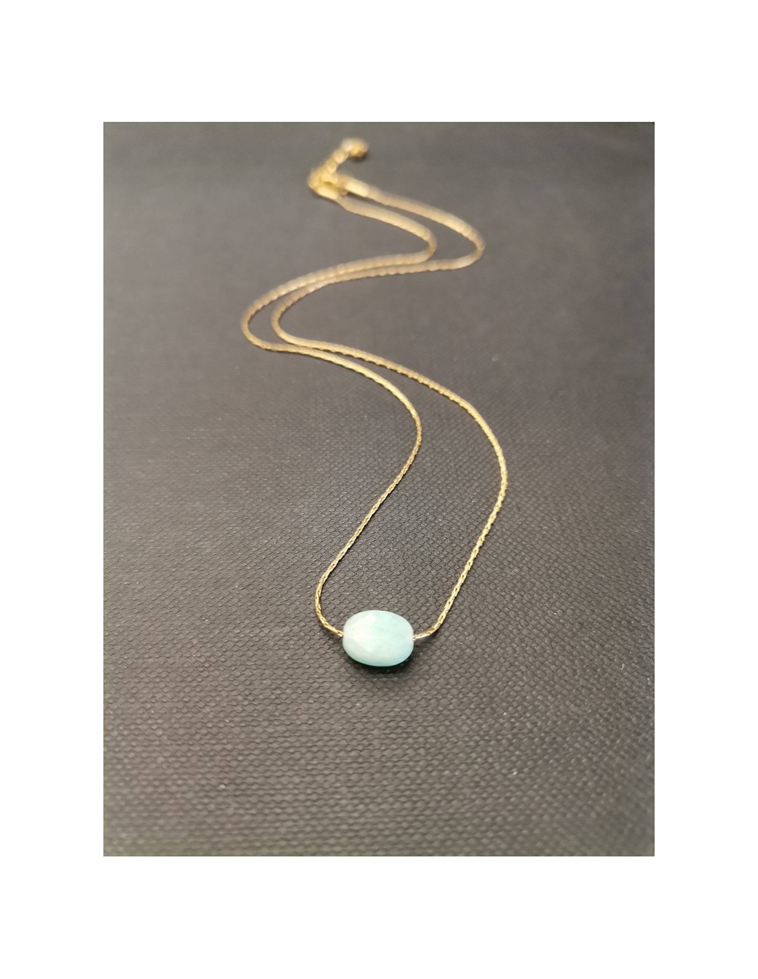 Jemný řetízek ve zlaté barvě s amazonitem. Krásný decentní doplněk, kterým doplníte pracovní i sváteční outfit. Řetízek má zapínáním na karabinku, celková délka je 39,5cm s možností prodloužení o 3cm. Šířka kamínku je 0,8cm.