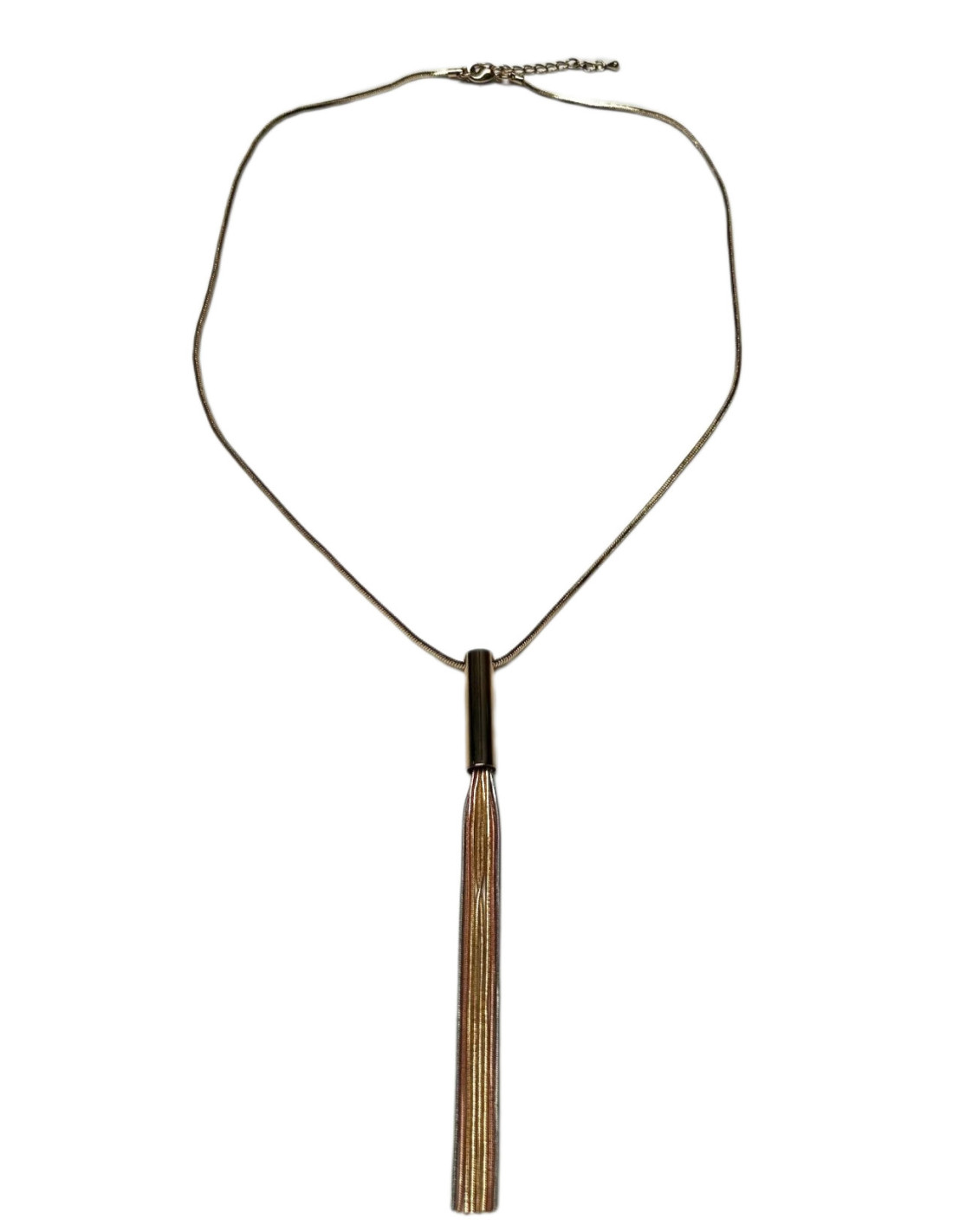 Náhrdelník podle posledních trendů je skvělým doplňkem pro Váš outfit. Jednoduchý náhrdelník tvoří řetíízek ve zlaté barvě s ověsem - střapcem, který tvoří řetízky zlaté, stříbrné a měděné barvy. Elegantní náhrdelník pro běžné i slavnostní příležitosti, ve kterém se budete cítit skvěle! Náhrdelník má zapínání na karabinku, délku náhrdelníku můžete upravit díky řetízku.