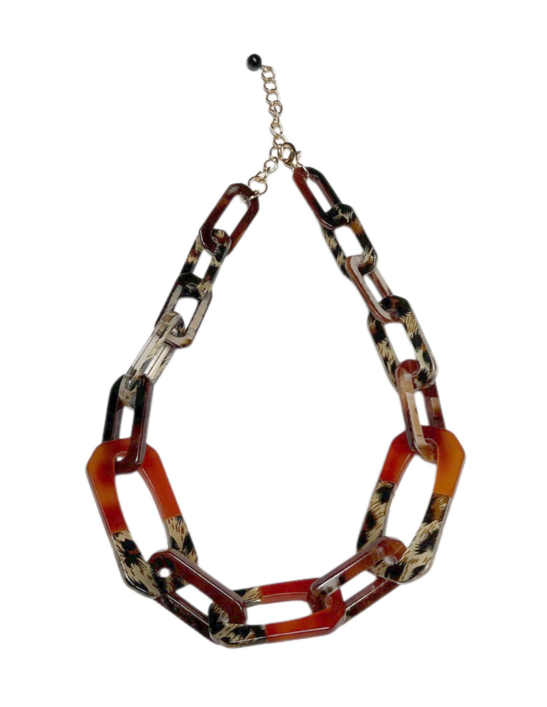 Lehký náhrdelník z podlouhlých ok v oranžové a béžové barvě se zvířecím motivem.