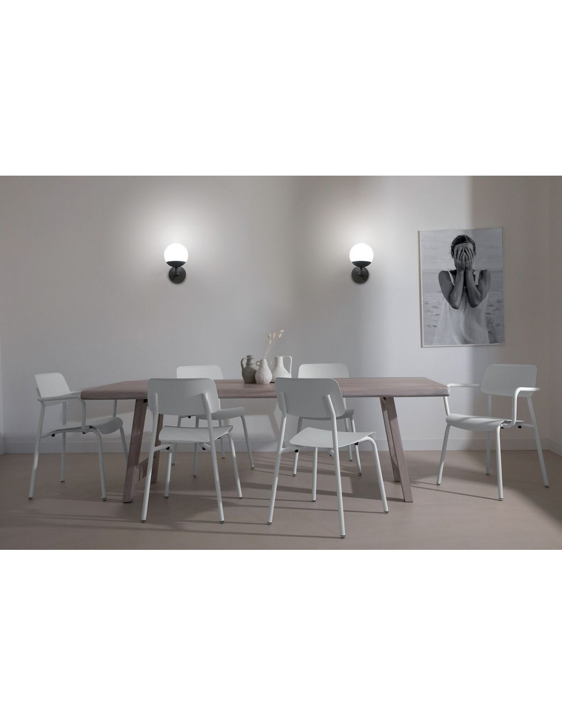Nástěnné světlo Mooon! vypadá jako malý měsíc, je vhodné na zahradu, terasu i balkon, použít ho můžete i v interiáru, třeba do chodby. Intenzitu světla a jeho barvu můžete ovládat pomocí dálkového ovladače Ludo nebo aplikací Fermob Lighting a Bluetooth. Hliníkový rám je dostupný v několika barvách a skleněná koule dobře rozptýlí světlo. Na stěnu ji jednoduše přiděláte pomocí systému Quick’n’clic.