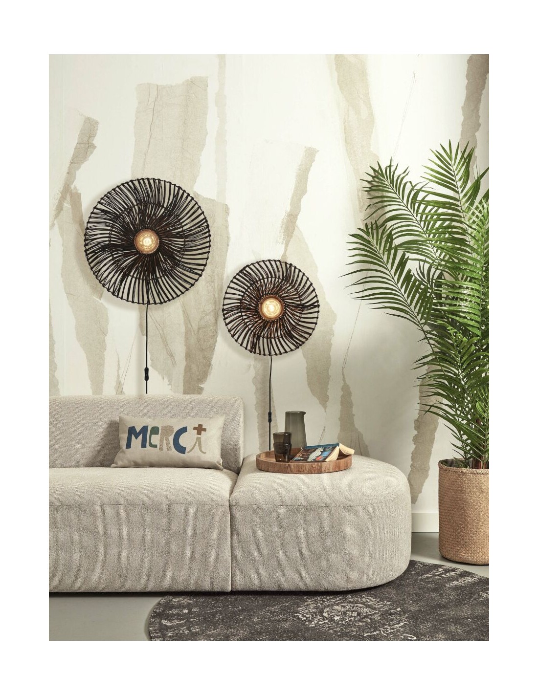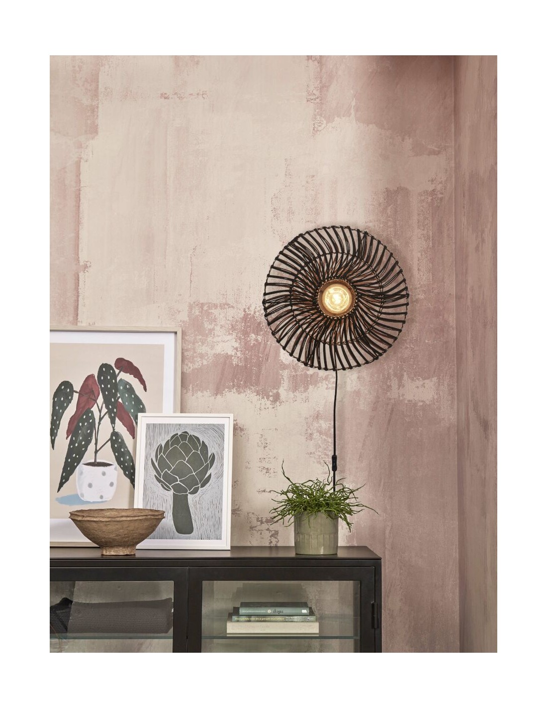 Nástěnné světlo Zanzibar ve vzhledu elegantního talíře, který je vyroben z ratanu v černé barvě. Světlo se hodí pro interiéry v severském nebo natural stylu. Vzhled bílého ratanu je skvělý v kombinaci se zelenými květinami.