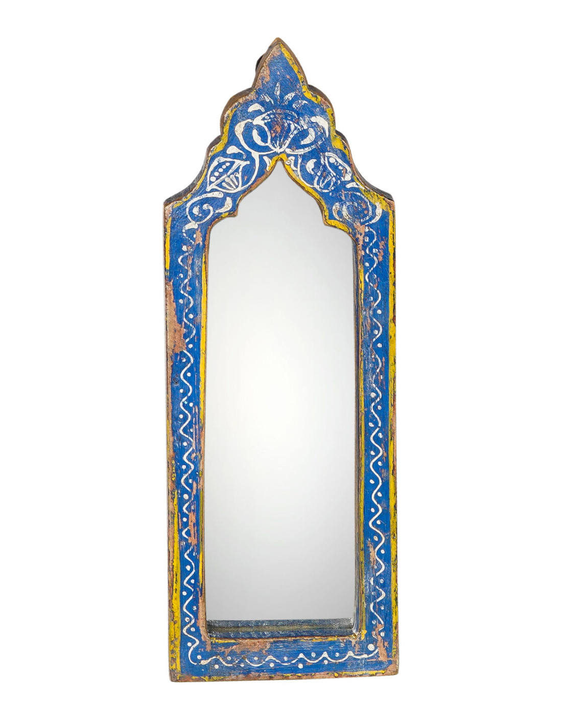 Malé zrcadlo s patinovaným rámem ze starého recyklovaného dřeva, který je ručně malovaný. Každý kus je originál. Tato zrcadla se hodí zavěsit na zeď samostatně, nebo v kompozici třeba s fotkami, kde můžete vytvořit osobitou dekoraci. Náš typ: zrcadlo je zajímavým doplňkem pro dětské pokoje a nebo osvěží nezajímavou malou místnost jako jsou třeba toalety či malá chodba.