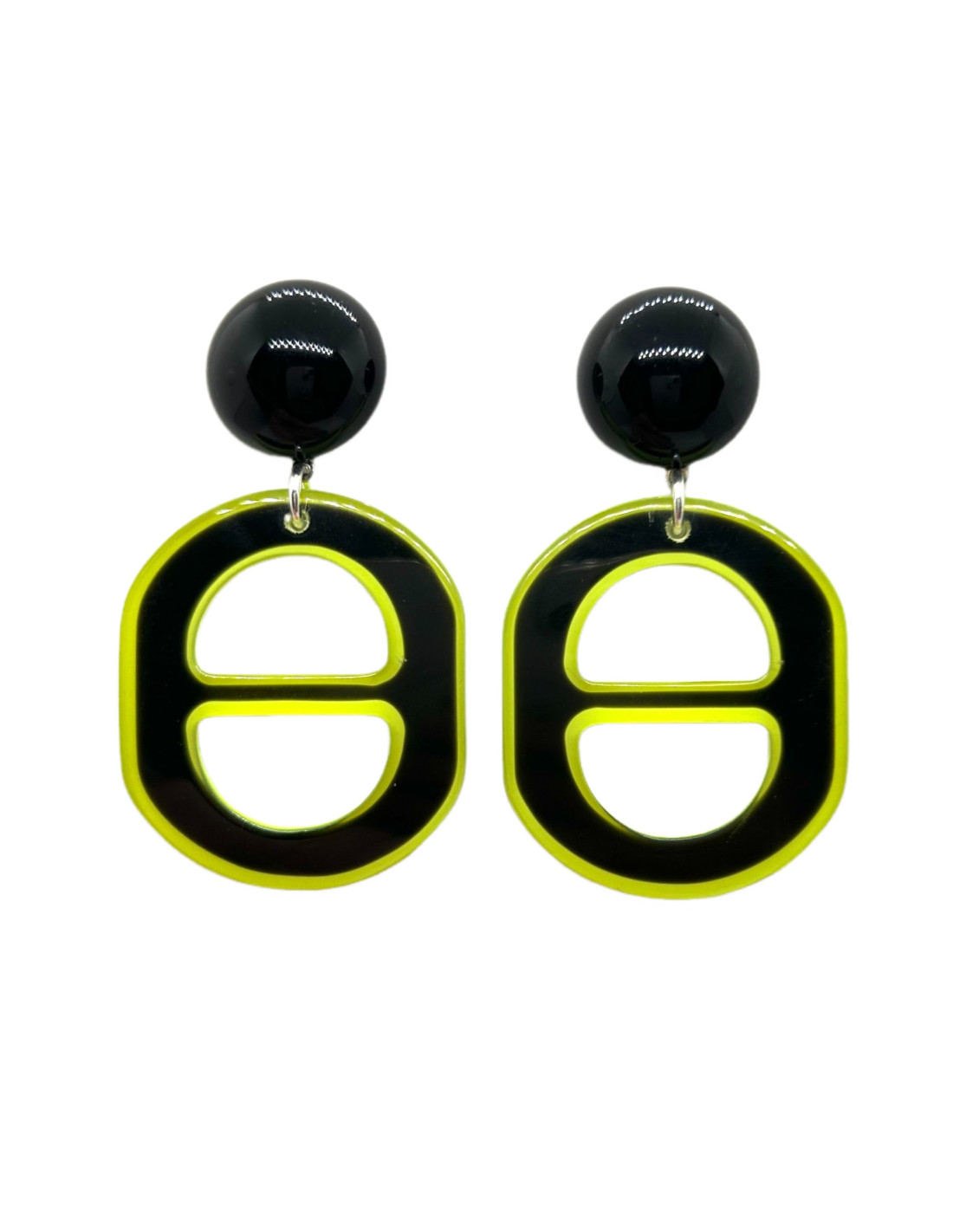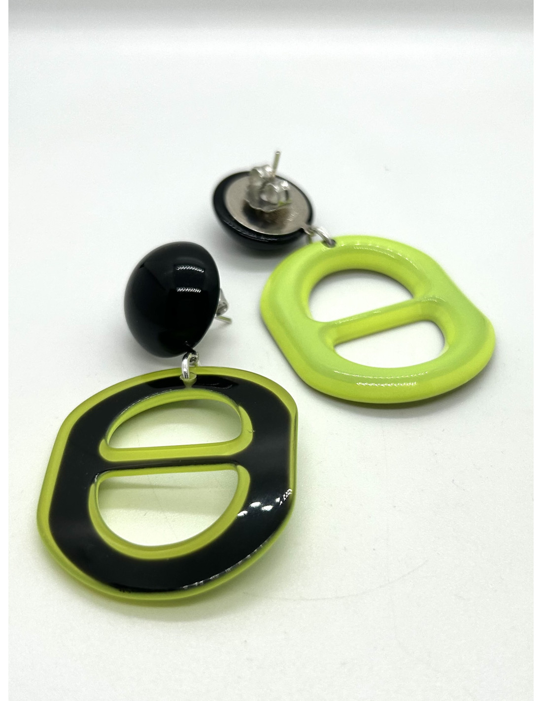 Extravegantní náušnice jsou odvážným módním prohlášením pro ženy, které milují pozornost a nebojí se vyjádřit svou jedinečnost. Unikátní kombinace hluboké černé a elektrizující neonové zelené vytváří dramatický kontrast, který v sobě spojuje futuristický nádech s pařížskou elegancí.