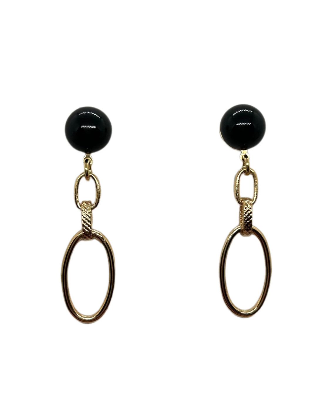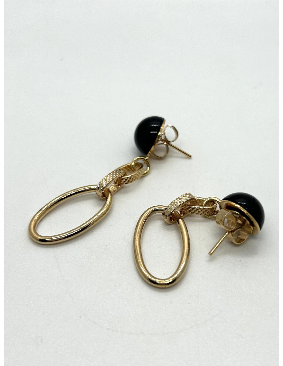 Visací náušnice z kovu ve zlaté barvě s černým detailem | FRANCINE BRAMLI