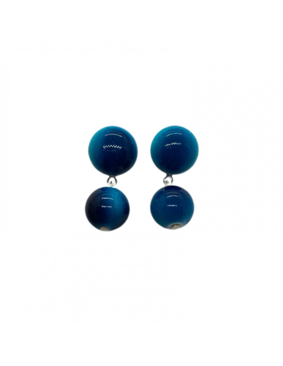 Jemné, elegantní, kulaté náušnice náušnice v odstínu modré barvy se zapínáním na zlatou puzetku. Celková délka náušnic je 3cm, šířka 1cm.