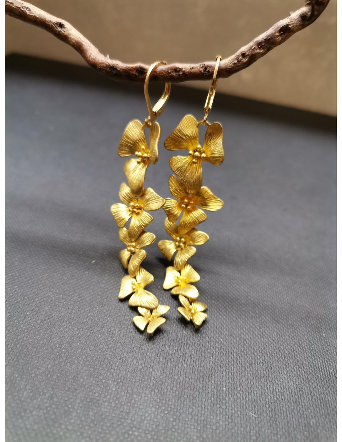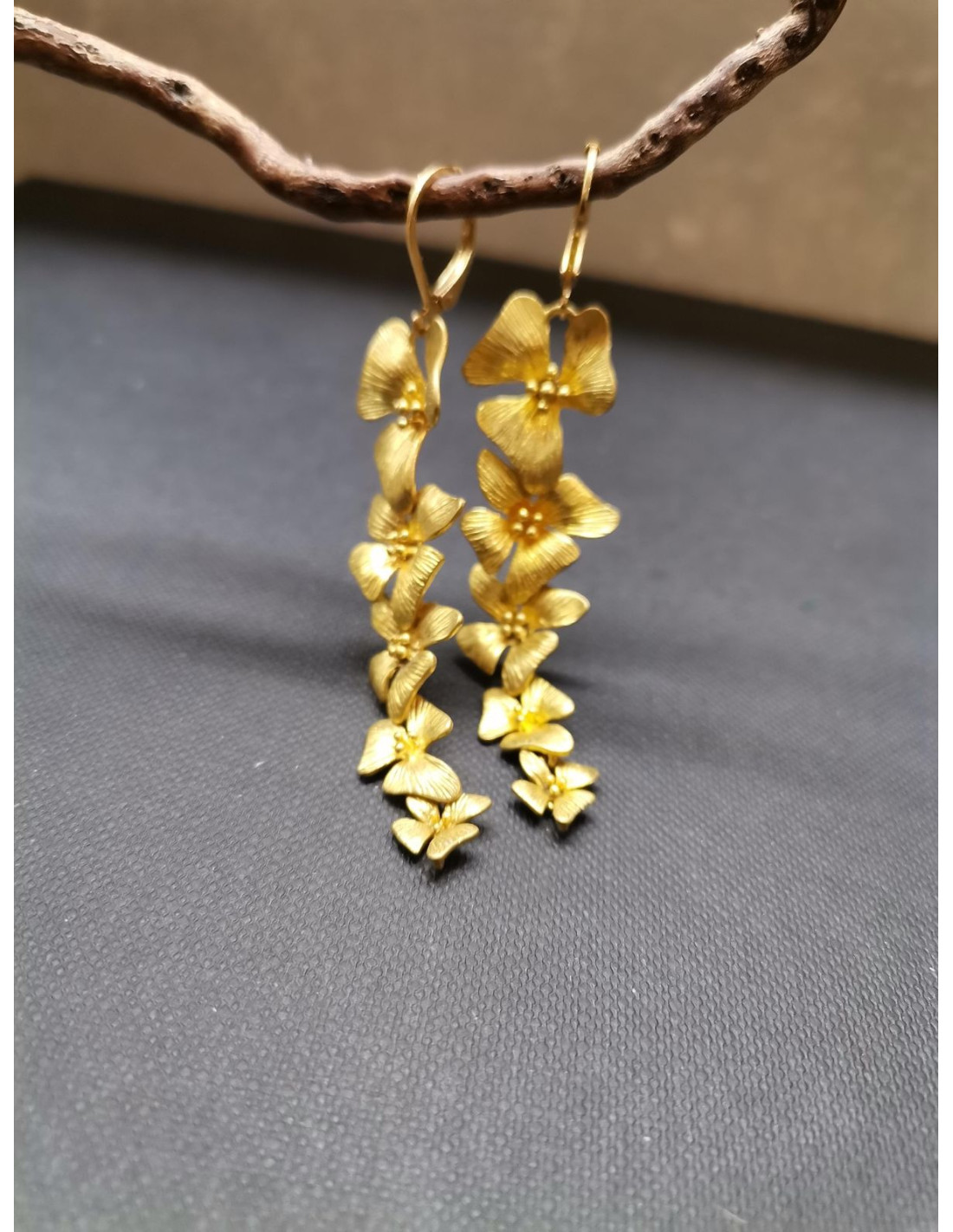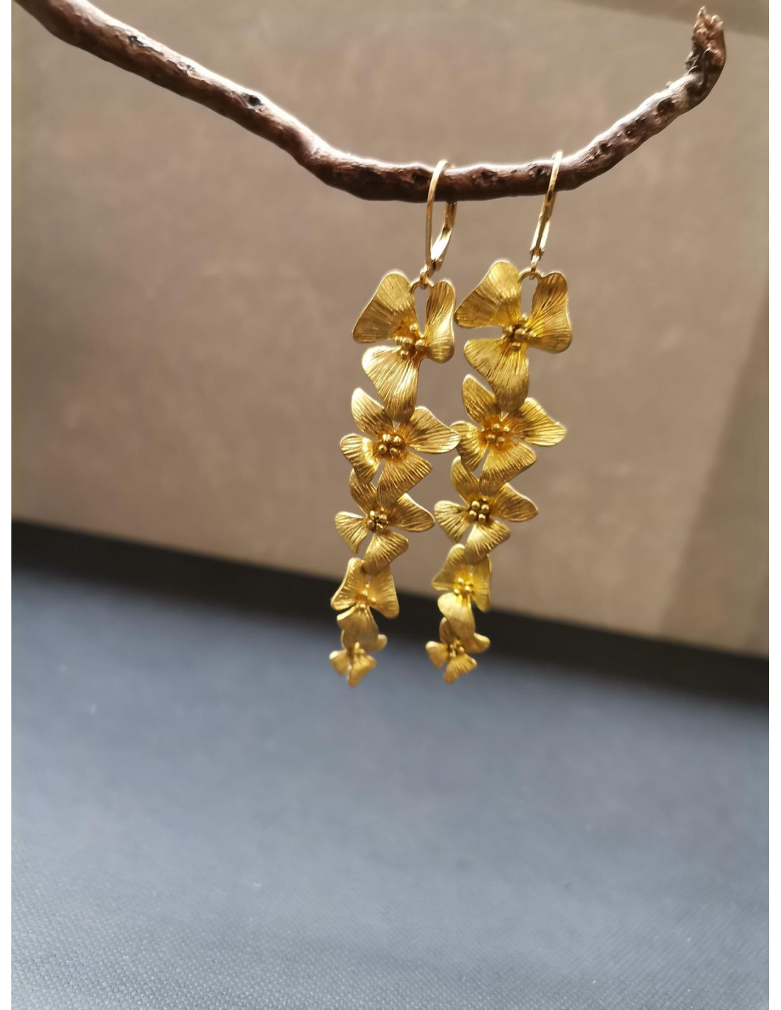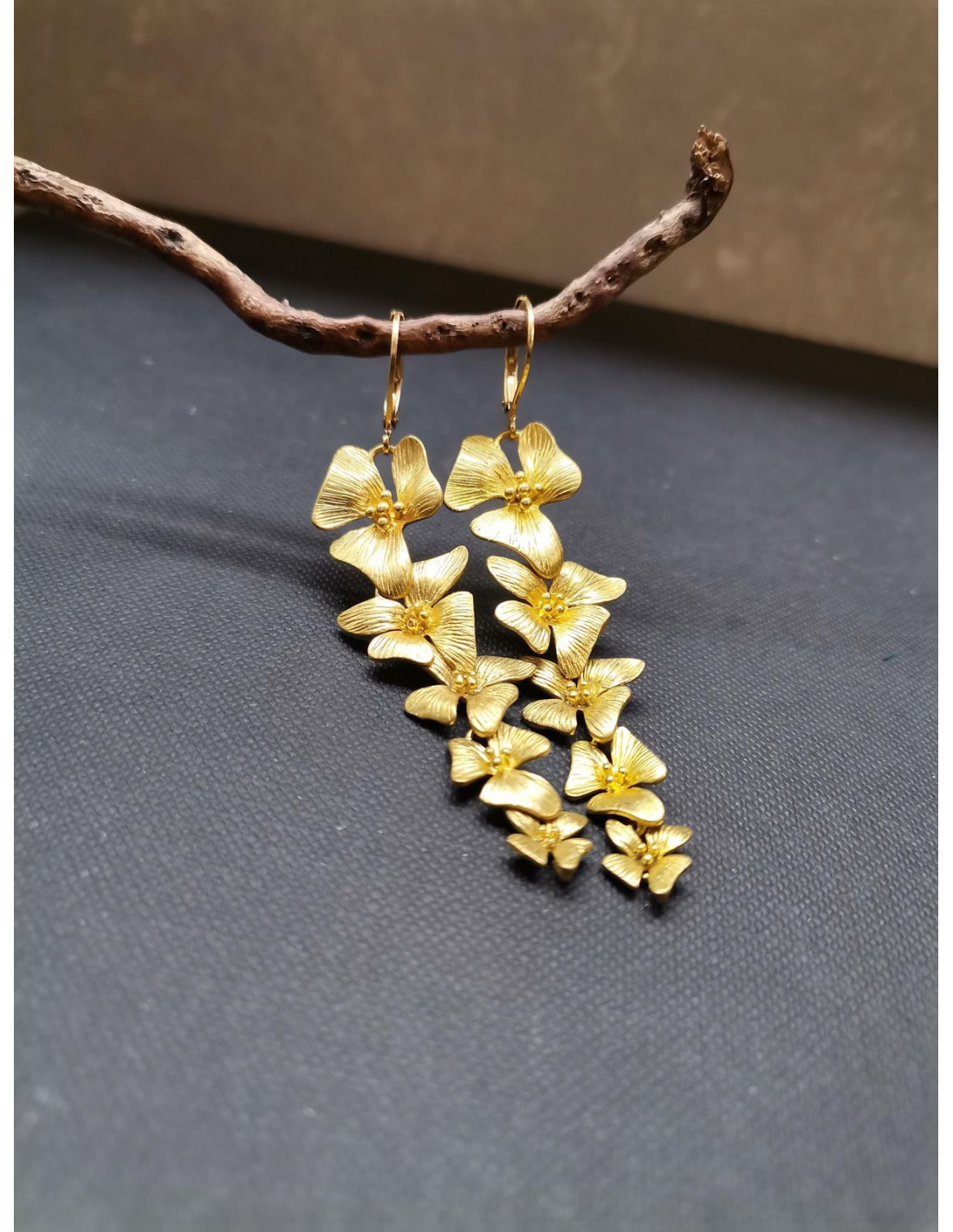 Výrazné náušnice s ověsem plným květů. Krásné náušnice ve zlaté barvě skvěle doplní váš každodenní outfit a vy se s nimi budete cítit skvěle. Náušnice mají zaklapávací zapínání.