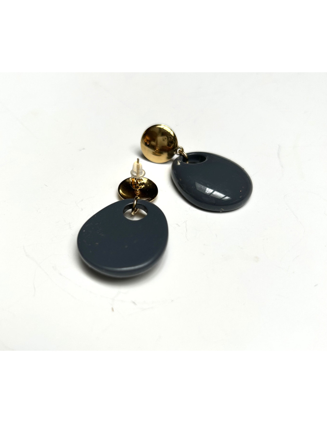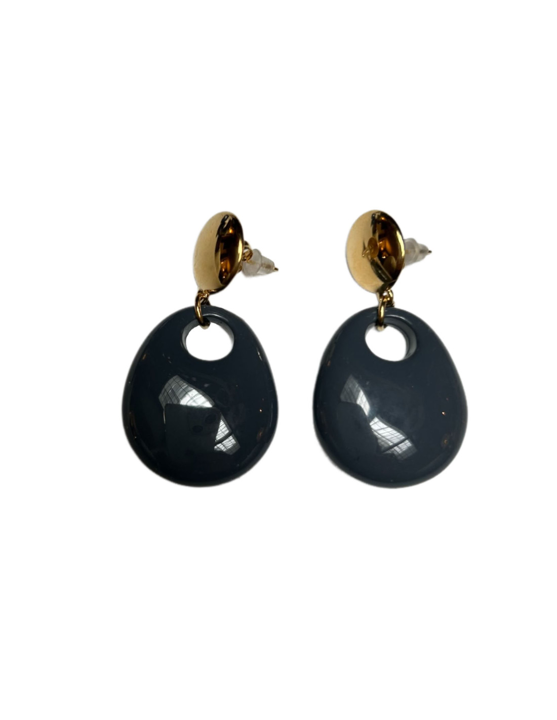 Elegantní náušnice se zapínáním na puzetku v kombinaci zlaté a tmavě šedé.