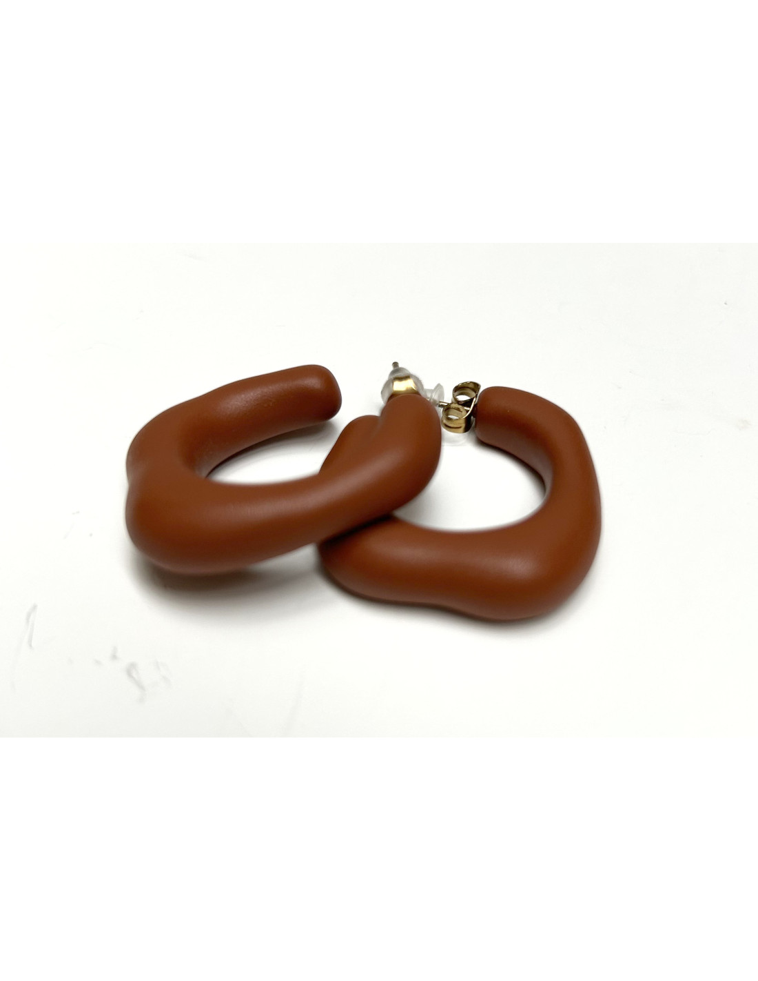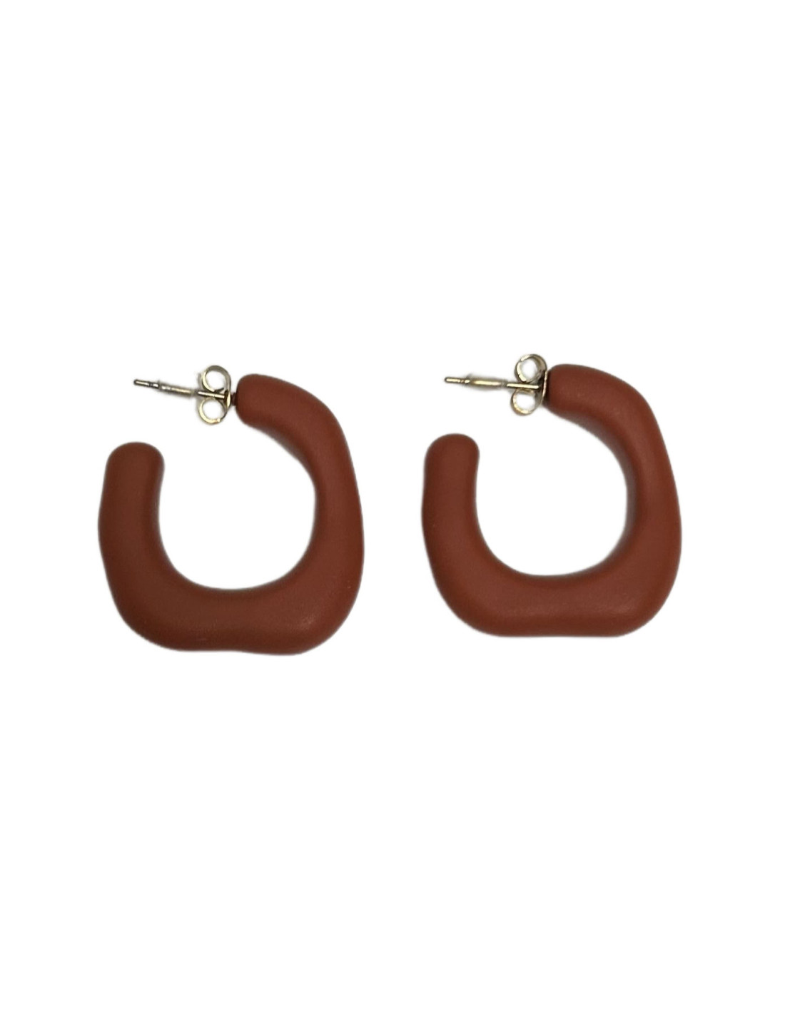 Jednoduché náušnice se zapínáním na puzetku v matné rezavé barvě.