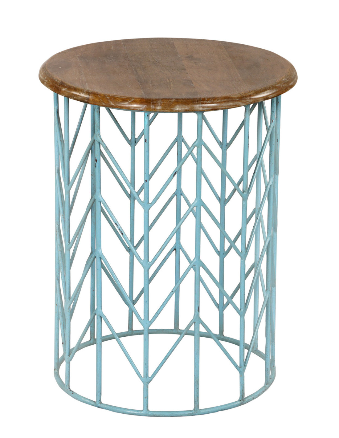Odkládací kulatý stolek se dřevem a modrou patinou | dovoz Indie