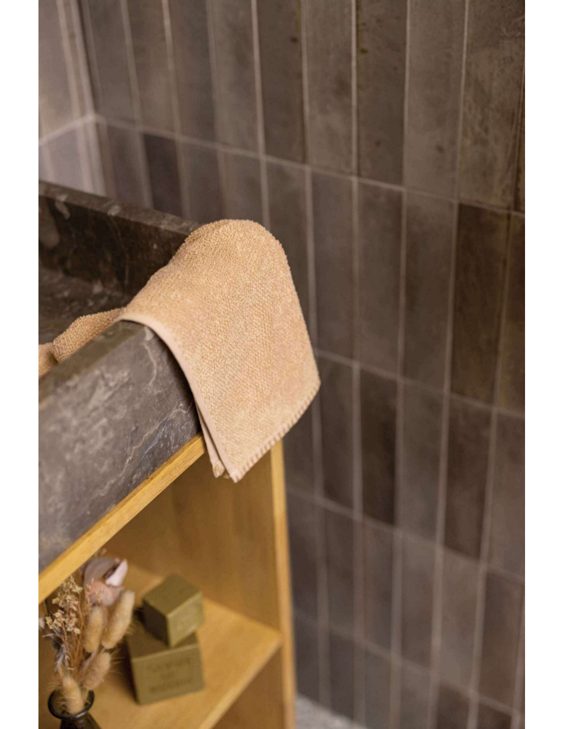 Ručníky a osušky z řady Bora ze 100% bavlny jsou dostupné v několika velikostech, báječně sají vlhkost a i po mnoha vyprání si zachovají svěží barvu. Jednoduchý ručník je z jedné strany ozdobně obšitý silnou nití, Je jen na vás jaké barvy zkombinujete, ručníky můžete doplnit předložkou Etia. Měkoučký bavlněný ručník s obšitím, v příjemné hnědo-béžové barvě, podobné barvě kávy s mlékem,