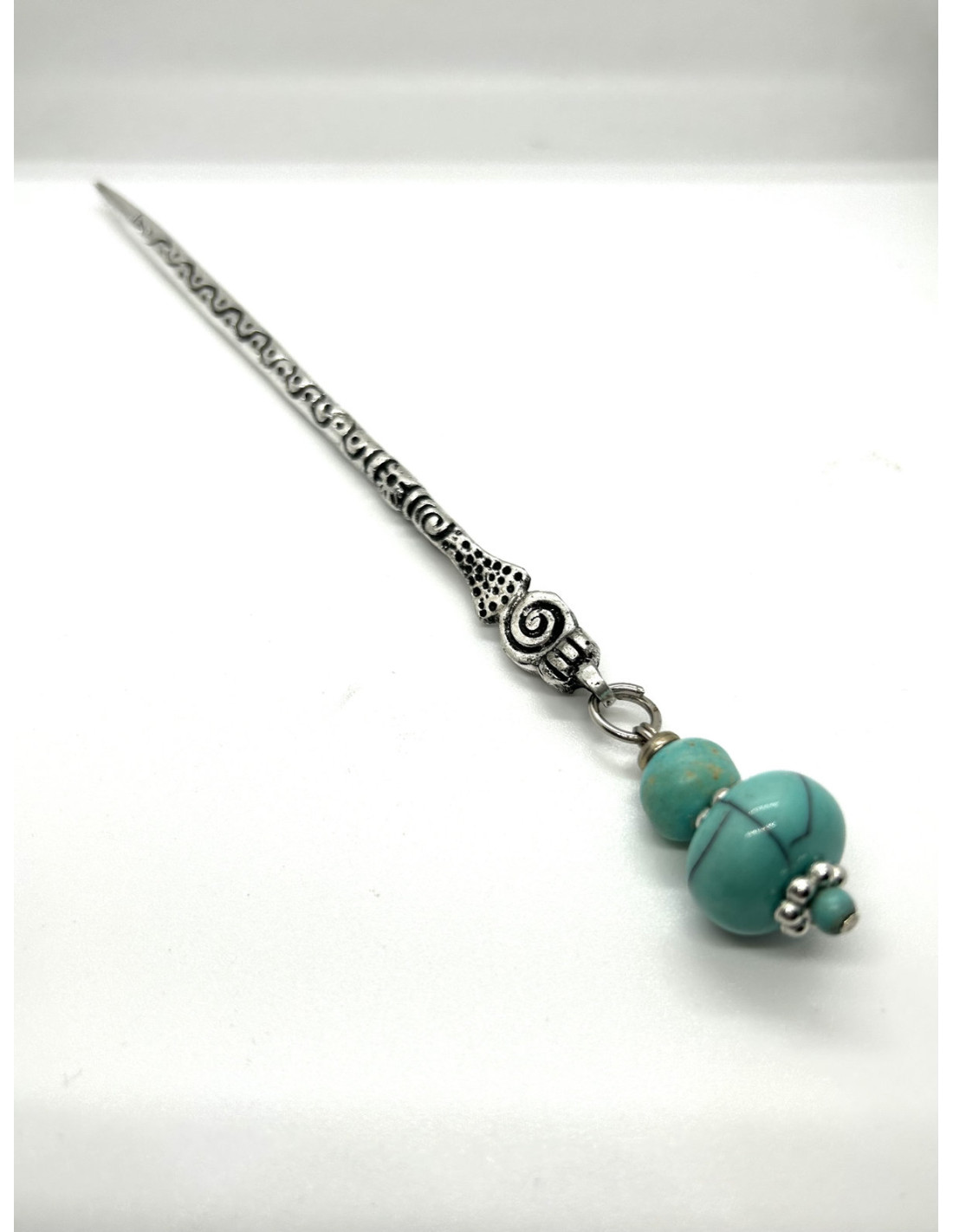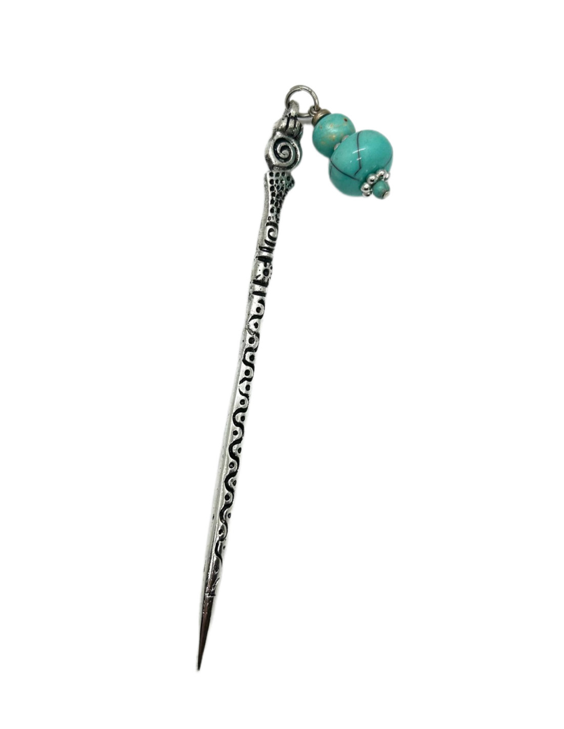 Kovová jehlice do vlasů je osobitým doplňkem, který zaujme svým originálním vzhledem. Vzniká v Indii v rámci tradiční řemeslné výroby tibetské menšiny, což se promítá do jejího charakteru a detailního zpracování.