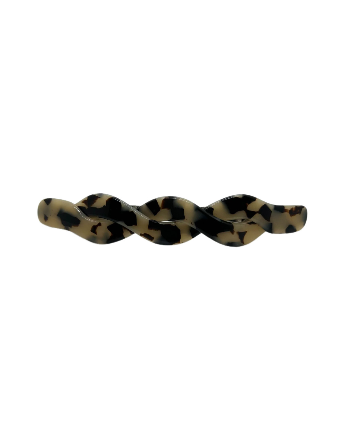 Dodejte svému účesu nádech pařížské noblesy. Tato tvarovaná spona z vysoce leštěného acetátu celulózy se vzorem želvoviny je navržena tak, aby se stala korunkou vaší krásy a povýšila váš účes.