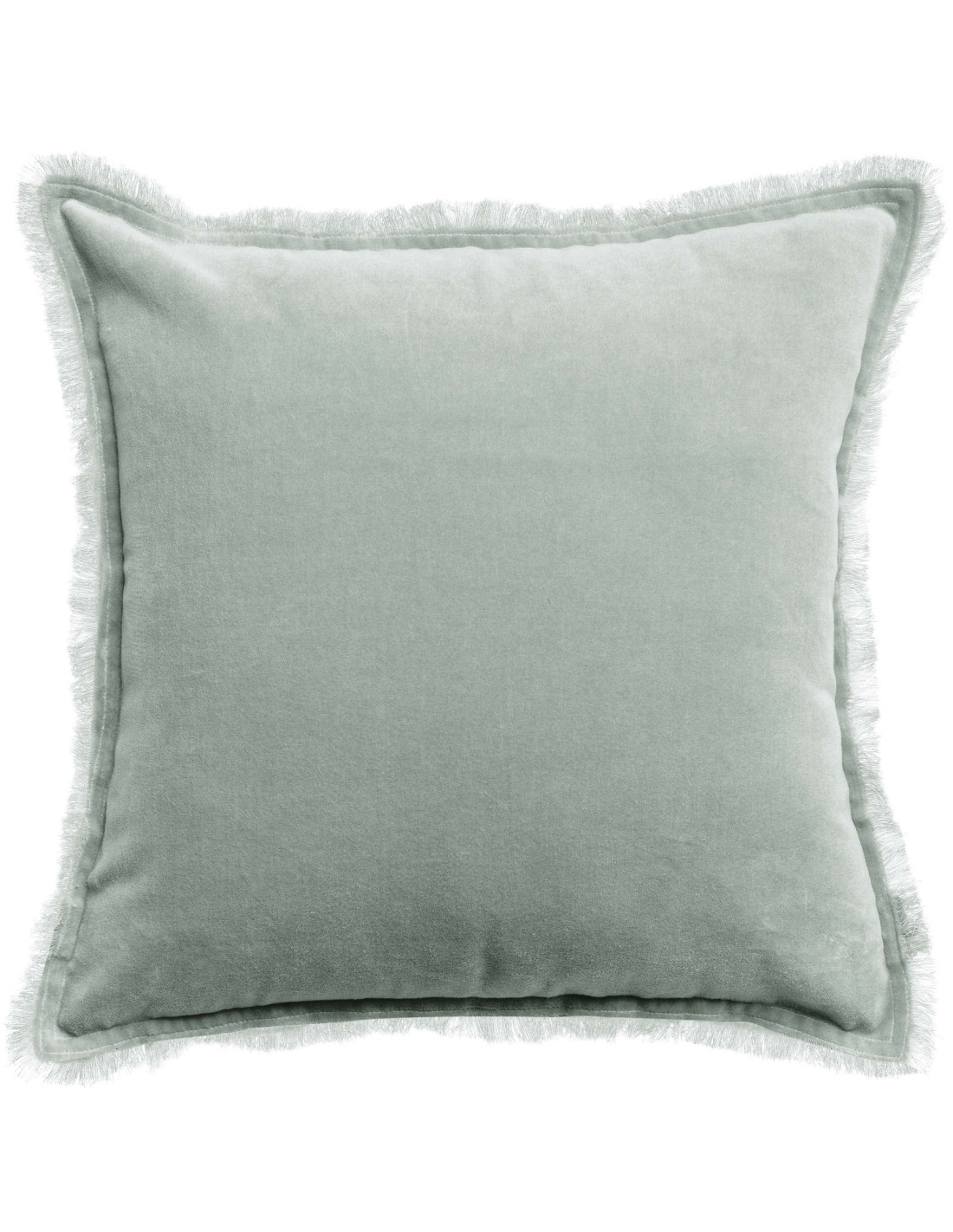 Sametový povlak na polštář Fara ve světlé, šedomodré barvě můžete kombinovat se šedou, růžovou i modrou. Dekorativní povlaky mají ozdobný, roztřepený okraj.